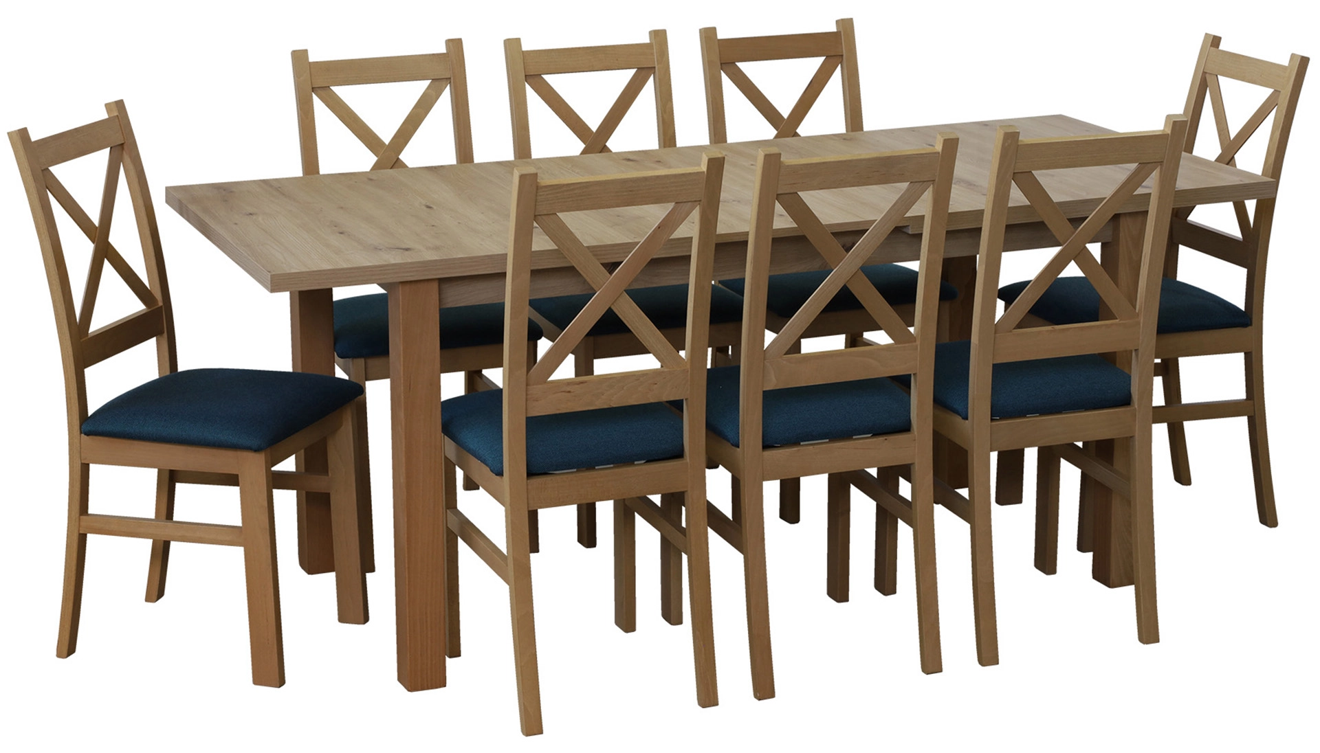 Rozkládací set stolu 150/190x80 dub Artisan se 4 židlemi dub Artisan/tyrkysová M015-4 – rozměry/specifikace