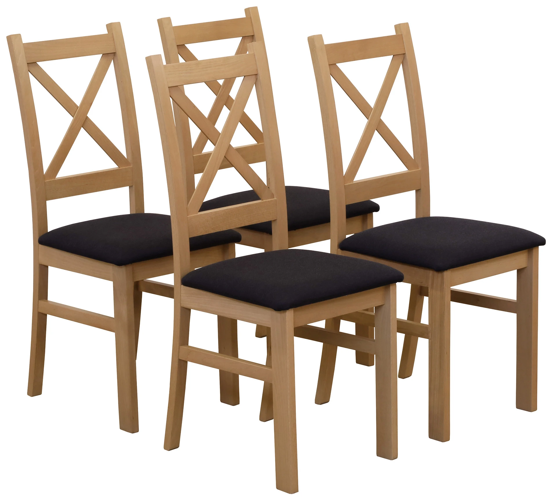 Sada 4x čalouněných židlí s křížovou opěrkou do jídelny dub artisan/černá – rozměry/specifikace