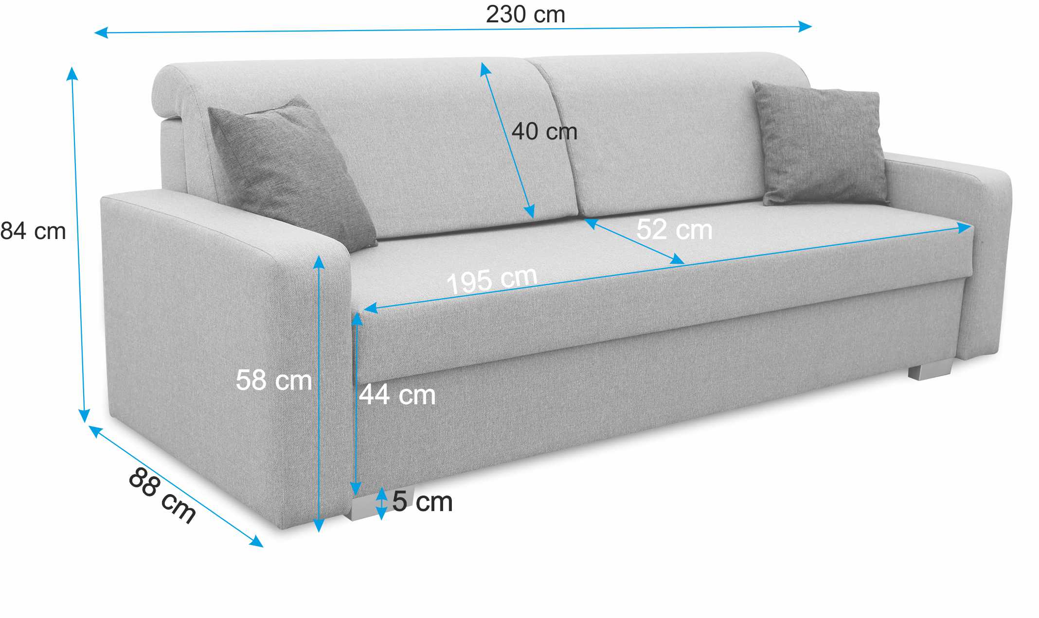 Díky této funkci můžete pohovku snadno a rychle přeměnit na manželskou postel o šířce 135 cm a délce 195 cm. Celková plocha na spaní je vyplněna pružinami typu bonell, které výrazně zvýší váš komfort spánku.