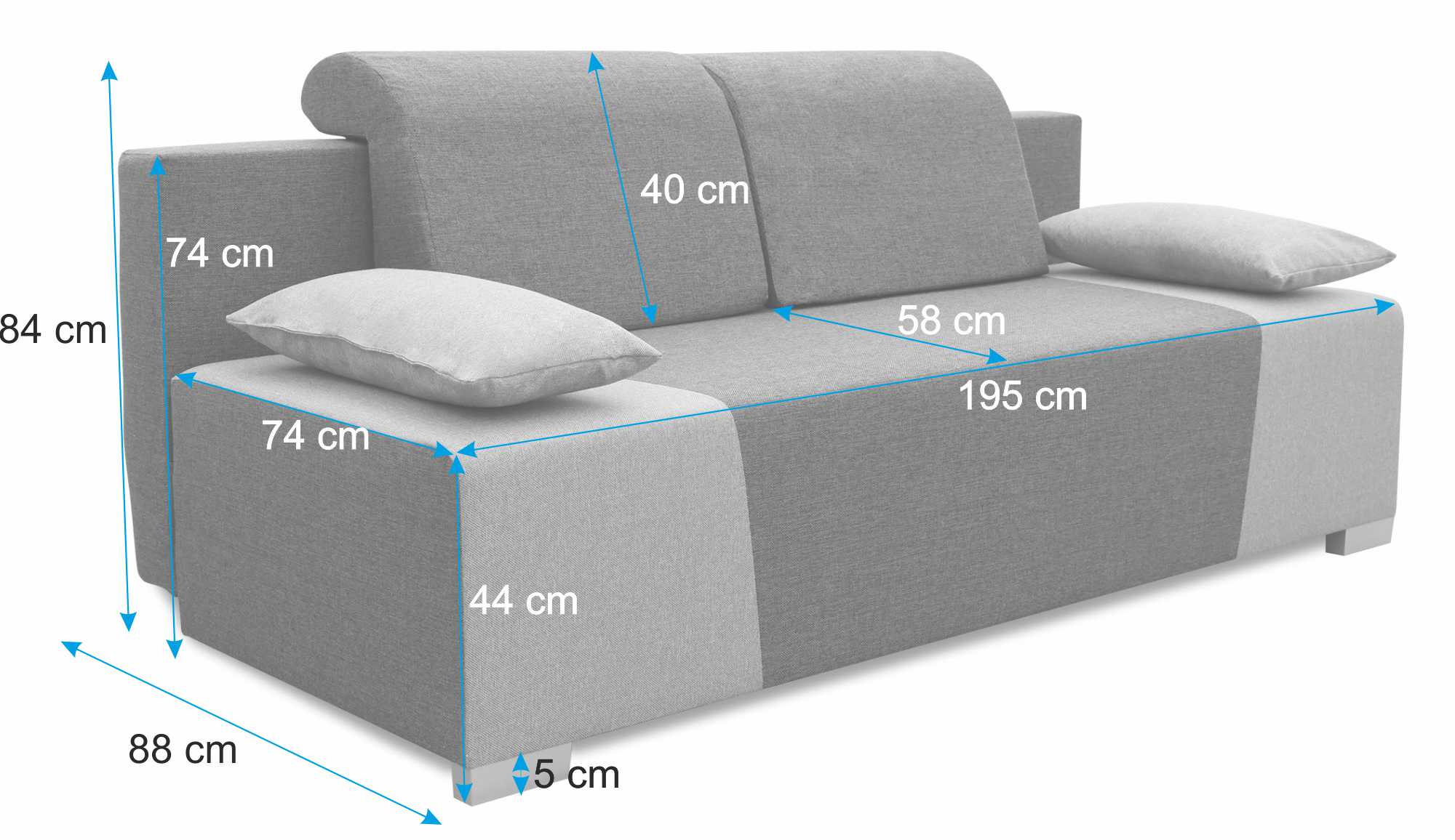 Po rozložení pohovky získáte velmi velkou spací plochu o šířce 135 cm a délce celých 195 cm. Celá spací plocha je vyplněna pružinami bonell, které výrazně zlepší váš komfort spánku.