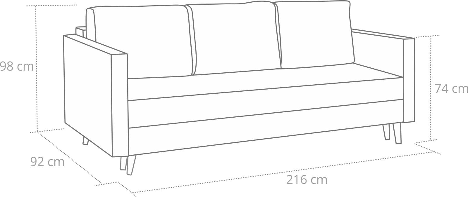 Moderní rozkládací pohovka s funkcí spaní ve skandinávském stylu. Vysoké dřevěné nohy působí přirozeně a dodávají jí hřejivý dojem. Komfort používání výrazně zvyšuje pohodlná pružinová matrace a automatický rozkládací mechanismus.