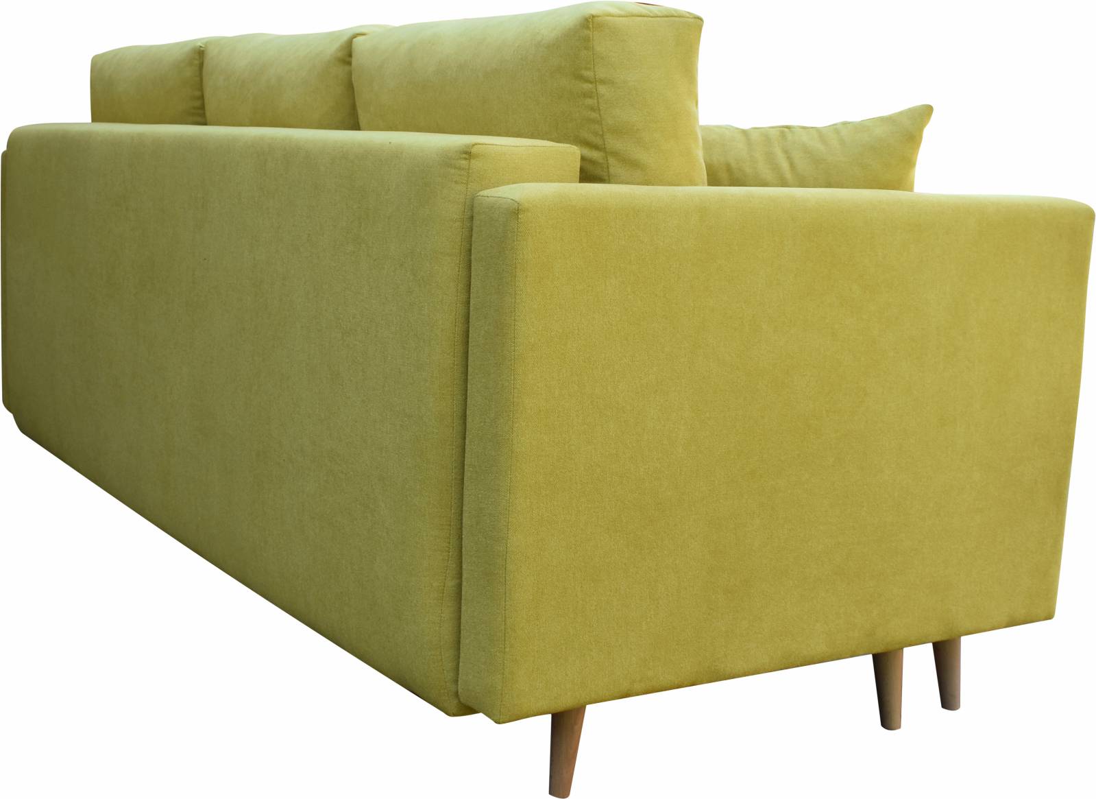 Moderní rozkládací pohovka s funkcí spaní ve skandinávském stylu. Vysoké dřevěné nohy působí přirozeně a dodávají jí hřejivý dojem. Komfort používání výrazně zvyšuje pohodlná pružinová matrace a automatický rozkládací mechanismus.