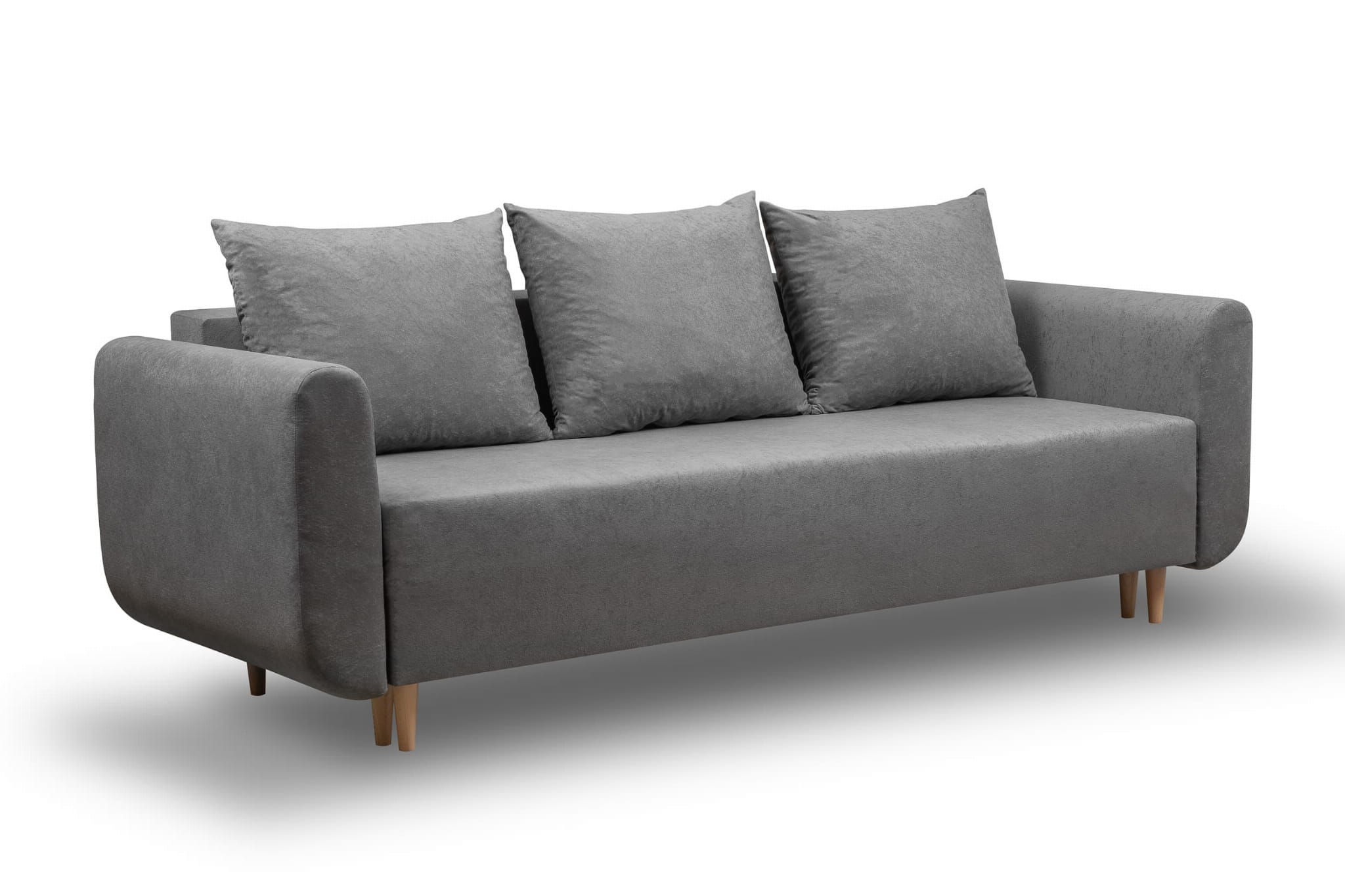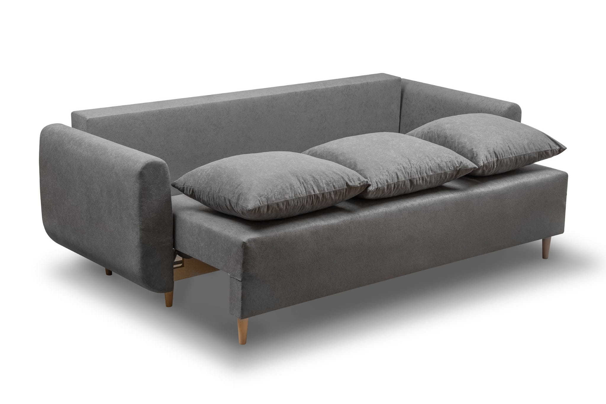 Rozkládací pohovka má hluboký úložný prostor pod celou plochou sedáku, takže do něj můžete uložit lůžkoviny a další předměty pro domácnost. Standardně dostanete pohovku s posuvným systémem na kolečkách. Jedná se o pohodlné a spolehlivé řešení, které tuto činnost výrazně usnadňuje.