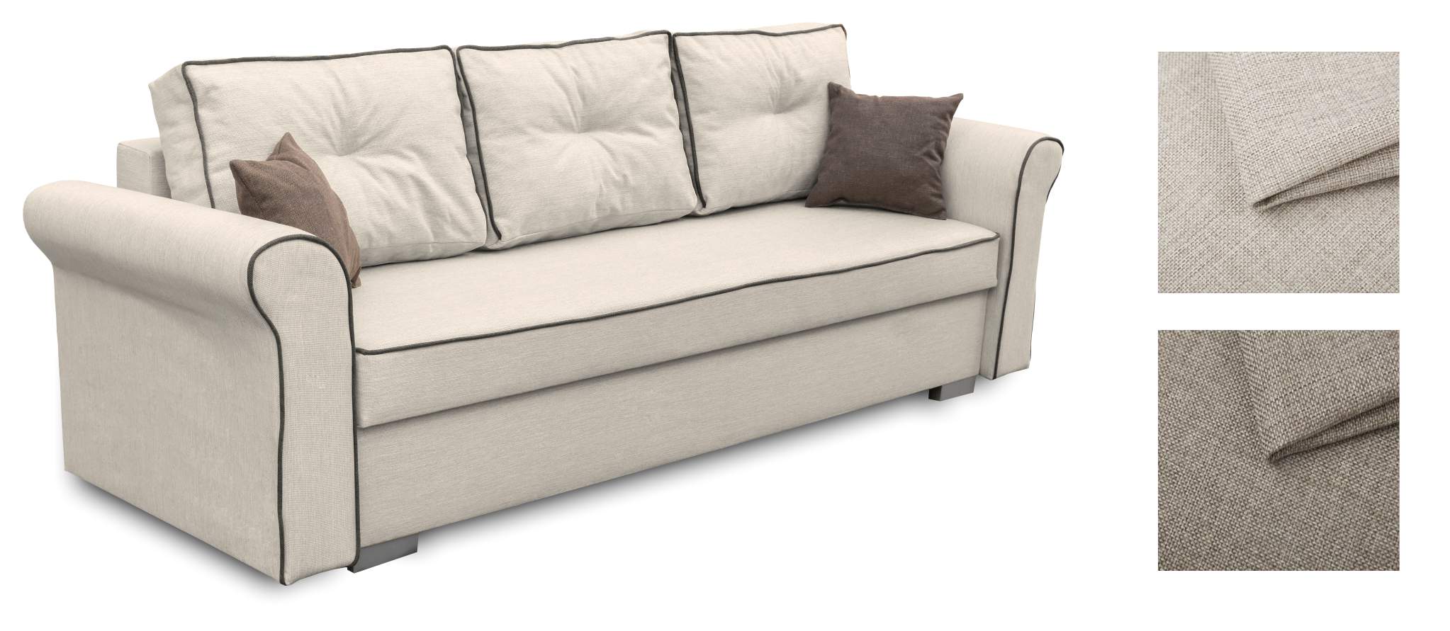 Merida je stylová rozkládací pohovka s funkcí spaní. Pružiny Bonell na celé spací ploše zajistí pohodlný spánek. Snadný rozkládací mechanismus umožní rychlou přeměnu pohovky na manželské lůžko. Dodává se se třemi velkými polštáři + dvěma polštáři pro pohodlný odpočinek. V pohovce najdete také velký úložný prostor, kam můžete uložit lůžkoviny nebo jiné domácí potřeby