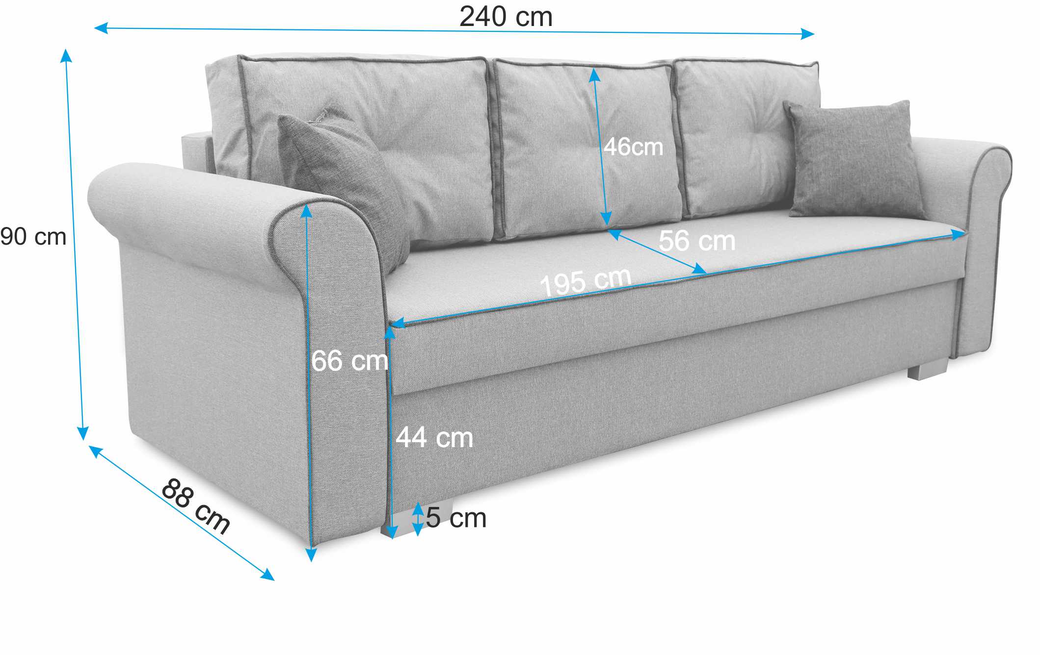 Díky ní můžete pohovku snadno a rychle přeměnit na dvoulůžko o šířce 135 cm a délce 195 cm. Celá spací plocha je vyplněna bonellovými pružinami, které výrazně zvýší váš komfort spánku.