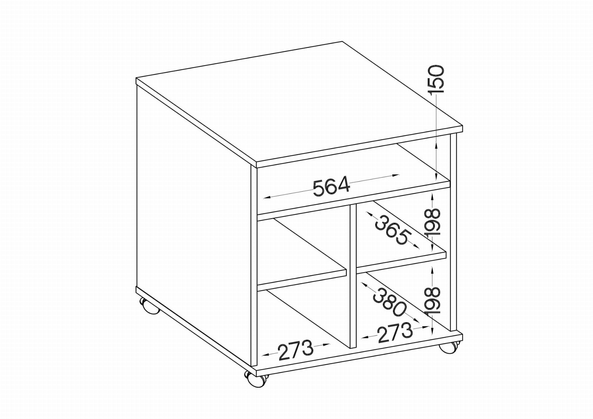 Kancelářský podstavec Malta má pět praktických polic, z nichž dvě jsou uzamykatelné. Dvě police mají rozměry 273x198x380 mm, další dvě 273x198x365 mm a největší 564x150x365 mm (š x v x h).