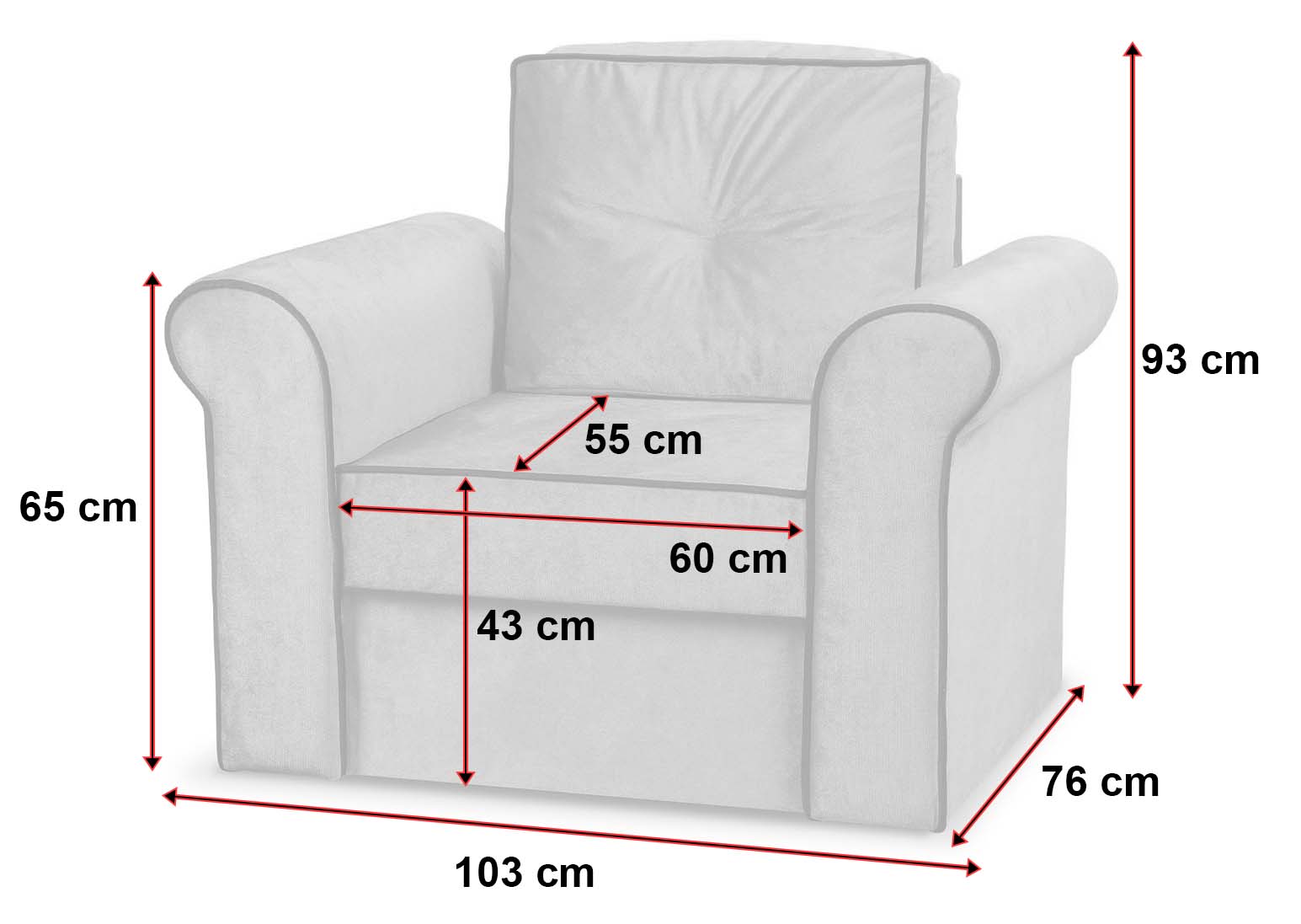 - Volně stojící - díky zadní části křesla čalouněné stejnou látkou bude výrobek vypadat skvěle ze všech stran