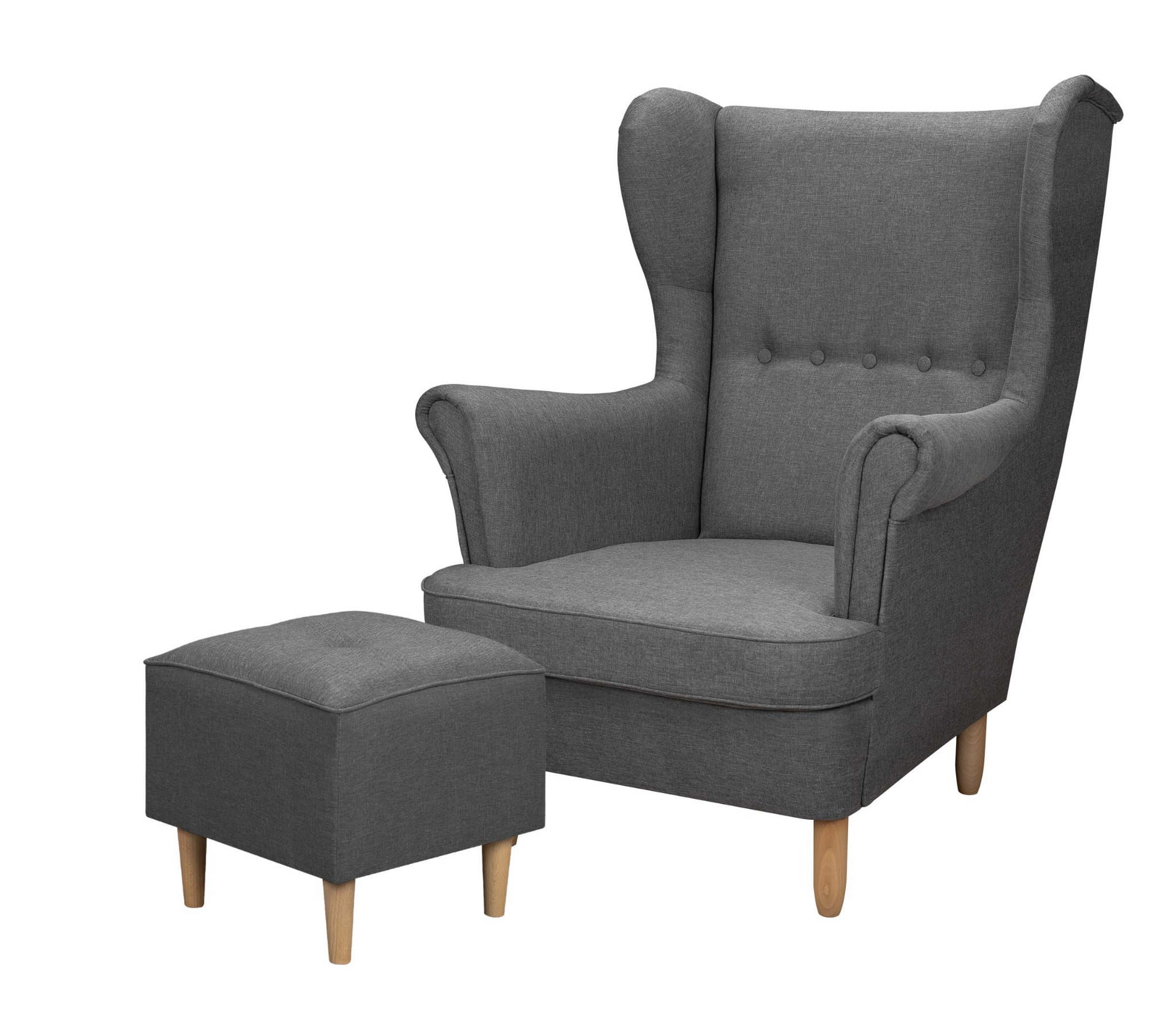 Křeslo vyrobené ve skandinávském stylu. Vysoké a pohodlné opěradlo a velké tvarované područky poskytují mimořádně pohodlný odpočinek. Model tvoří čtyři masivní dřevěné nohy v přírodní světlé barvě. Hluboký sedák a pohodlné opěradlo s charakteristickými " ušima", tzv. ušákem, je výrobek, který se v poslední době těší velké oblibě.