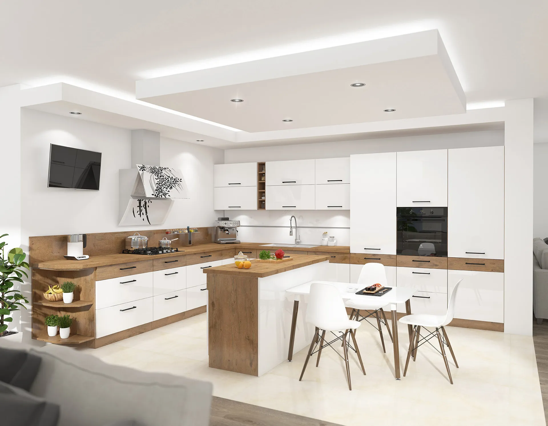 Praktická kuchyňská nástěnná skříňka s čelem ve 2 barevných variantách. Korpus skříňky v barvě dub lancelot. Skříňka z kolekce kuchyňského nábytku VIGO.