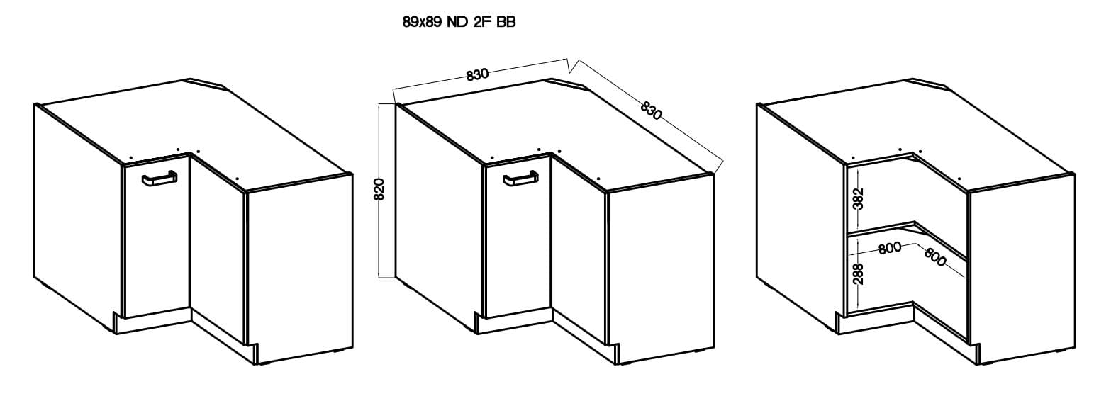 EKO rohová kuchyňská rohová skříňka 89x89 DN 1F bílá