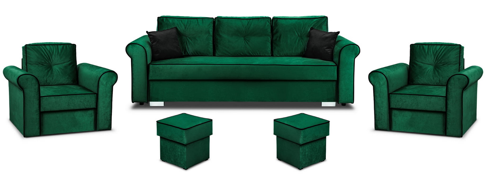 Merida Lounge Set Pohovka s 2 křesla s podnožkami Tmavě zelená