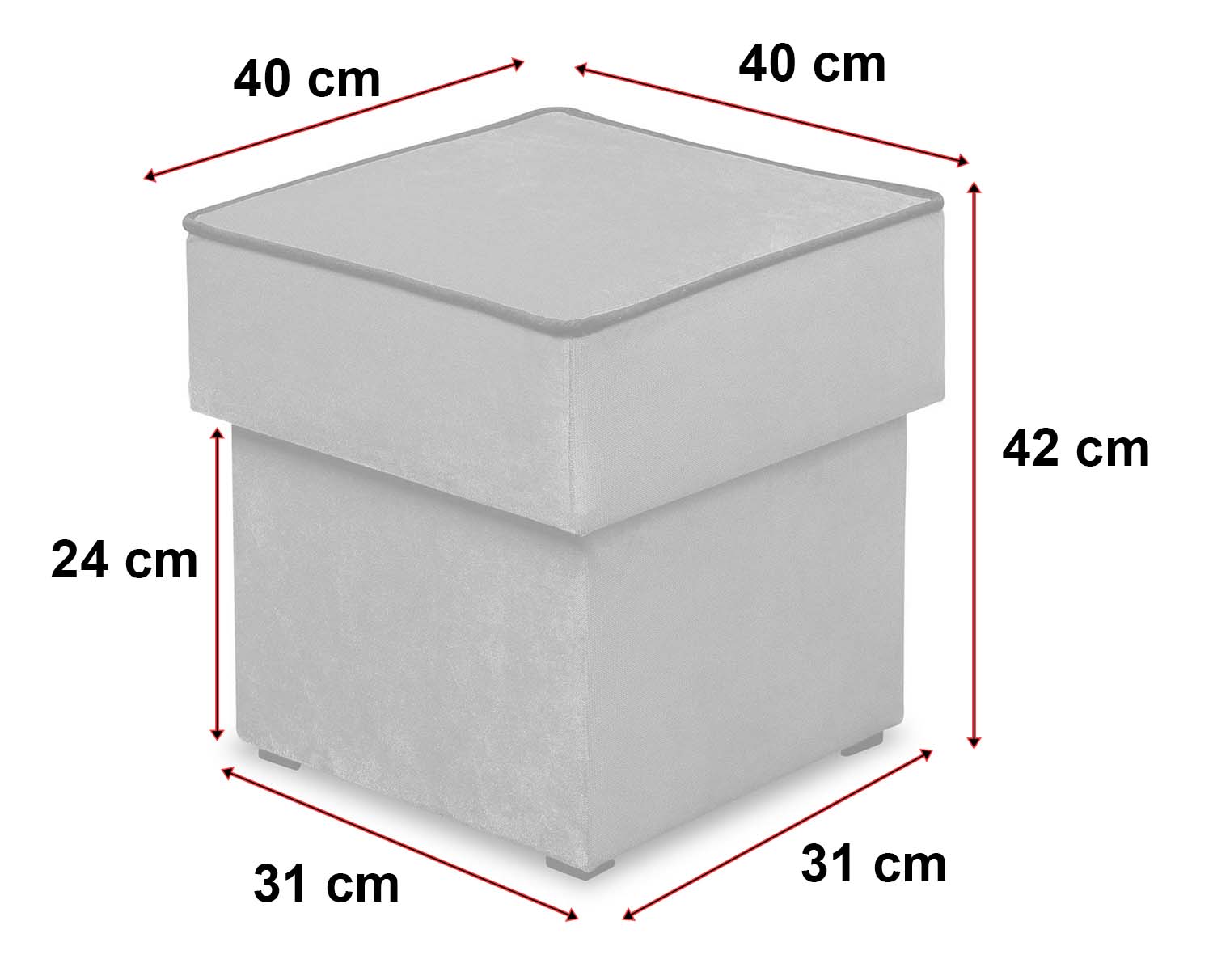 Puf Merida má úložný prostor o rozměrech 31x31 cm a hloubce 24 cm. Je to dobré místo pro hračky vašich dětí, zimní rukavice nebo šály či šátky. Možností je mnoho a k dispozici máte úložný prostor o objemu 23 l.