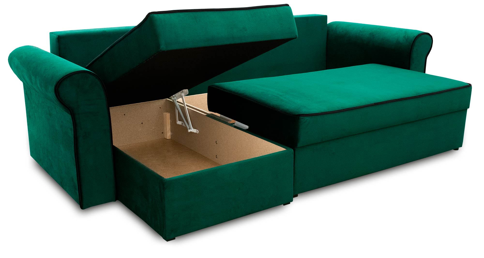 V rozloženém stavu poskytuje rohová pohovka velkorysou plochu na spaní. Celá spací plocha je vyplněna pružinami bonell, což se následně projeví v pohodlném spánku.