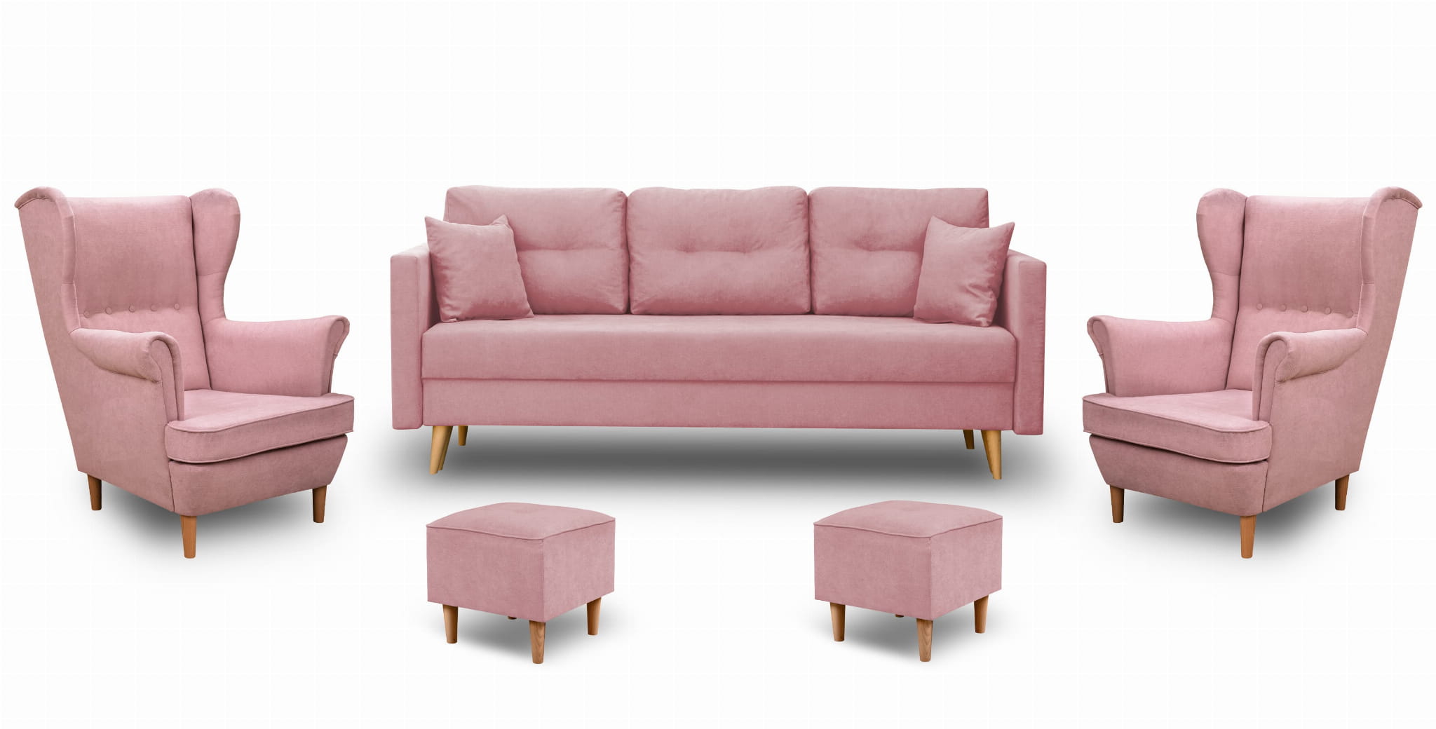 Skandinávská sedací souprava + 2 křesla s podnožkami Růžová