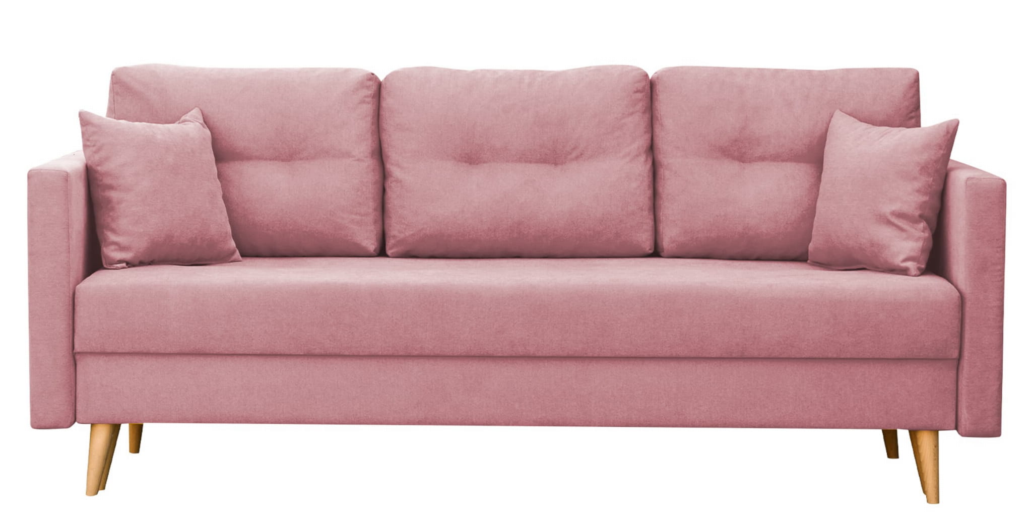 Moderní rozkládací pohovka s funkcí spaní navržena ve skandinávském stylu. Vysoké dřevěné nohy dodávají přírodní a hřejivý dojem. Pohodlná pružinová matrace a automatický rozkládací mechanismus výrazně zvyšují komfort používání.