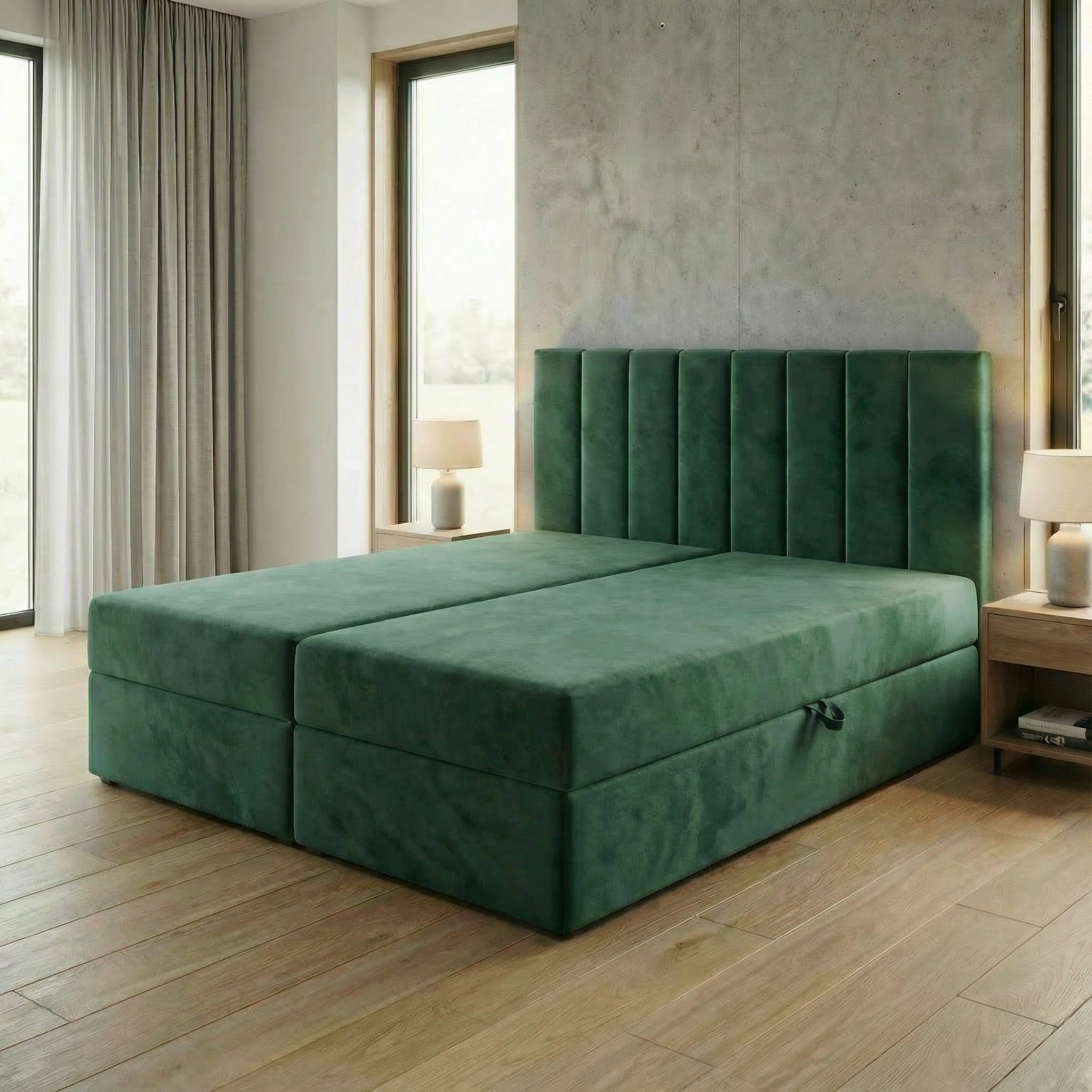 Kontinentální postel 140x200 SONNO BELLO lahvově zelená 2 úložné prostory