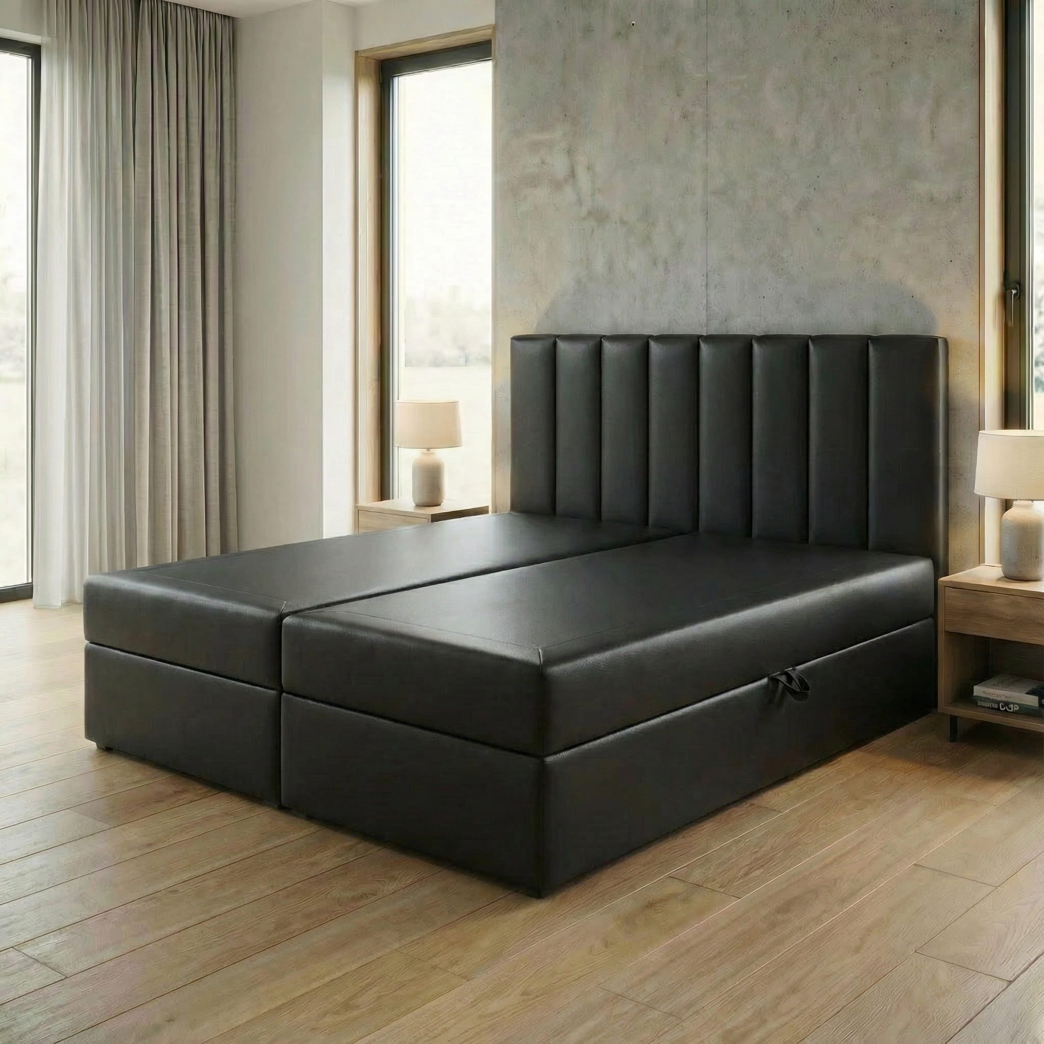 Kontinentální postel 160x200 SONNO BELLO 2 černá eko kůže 2 úložné prostory