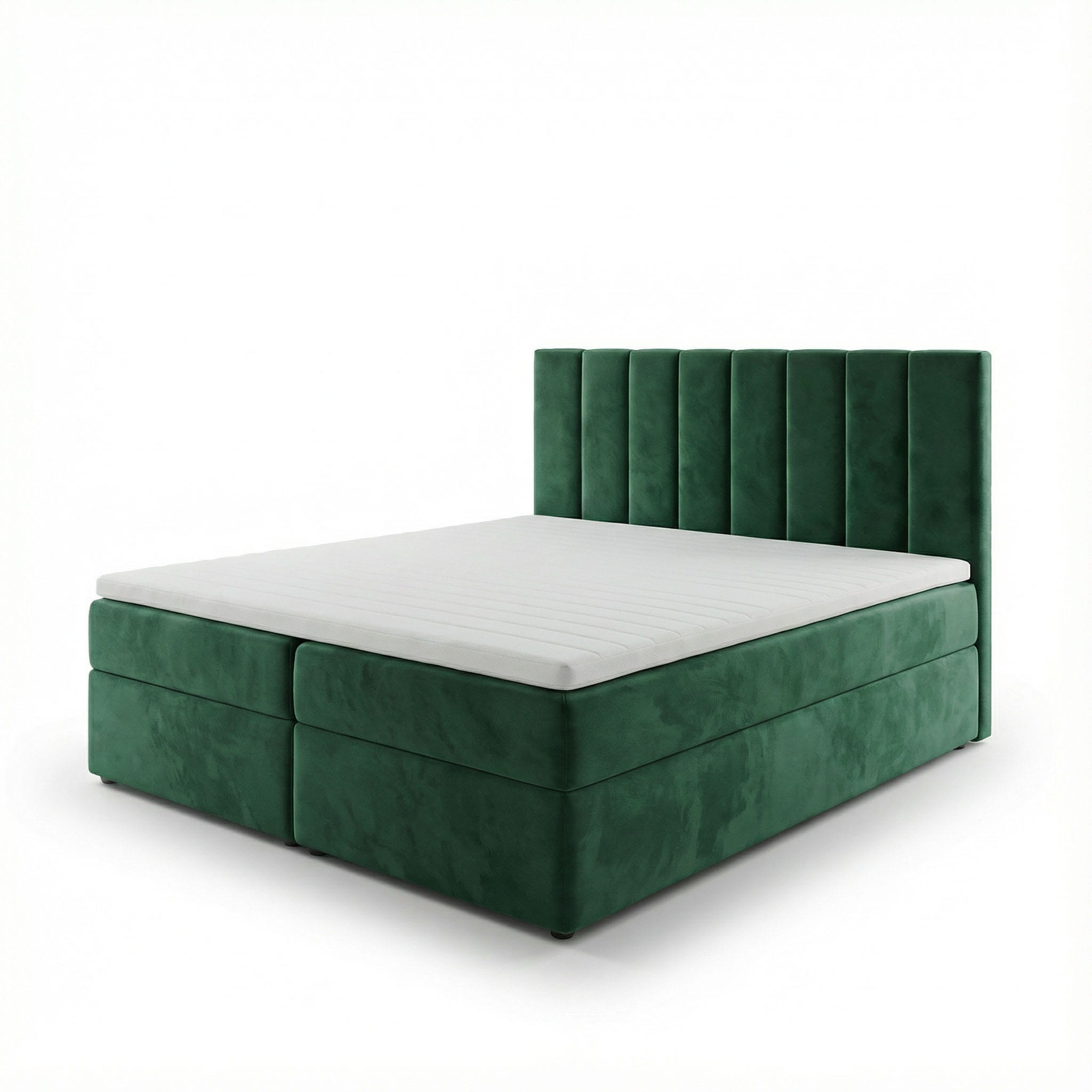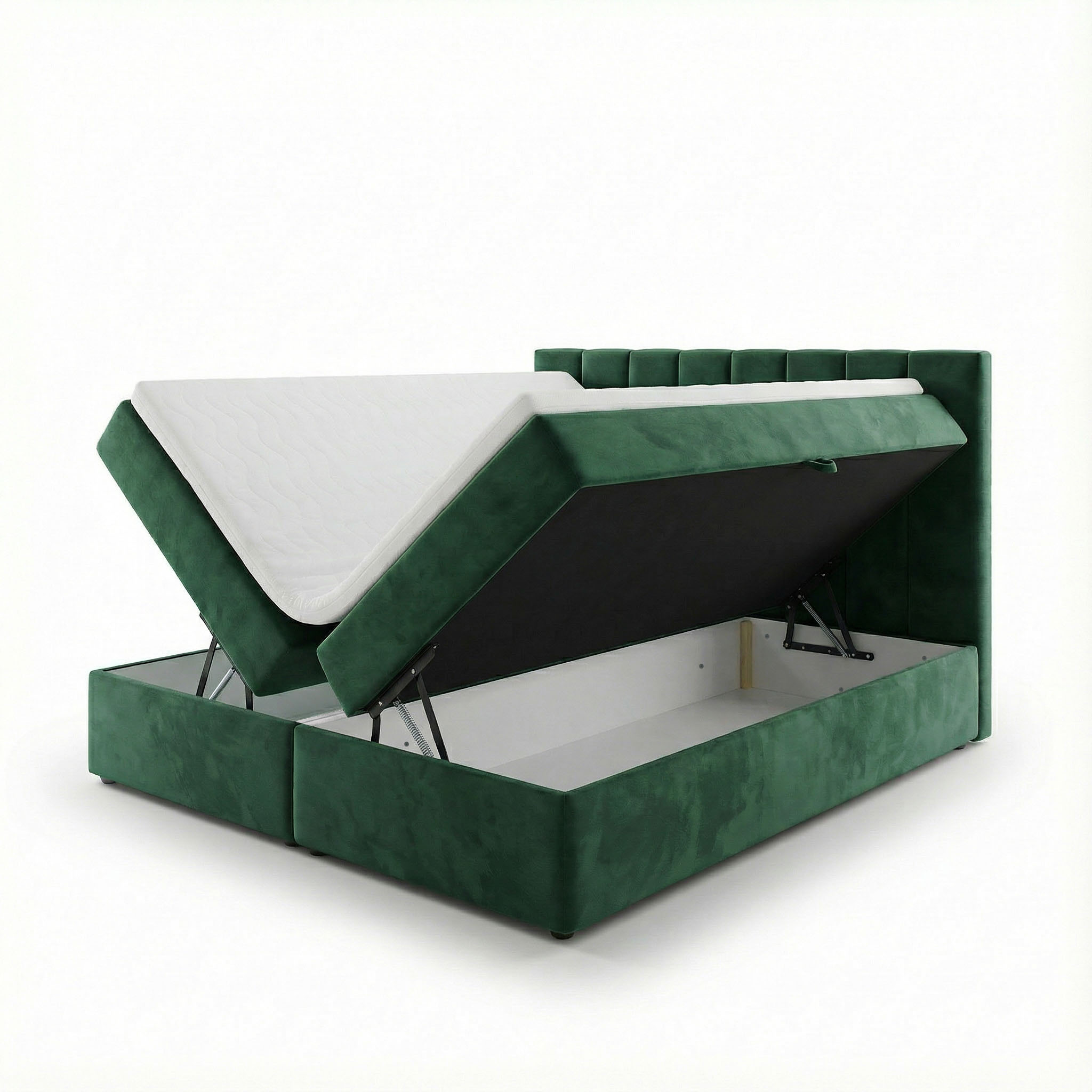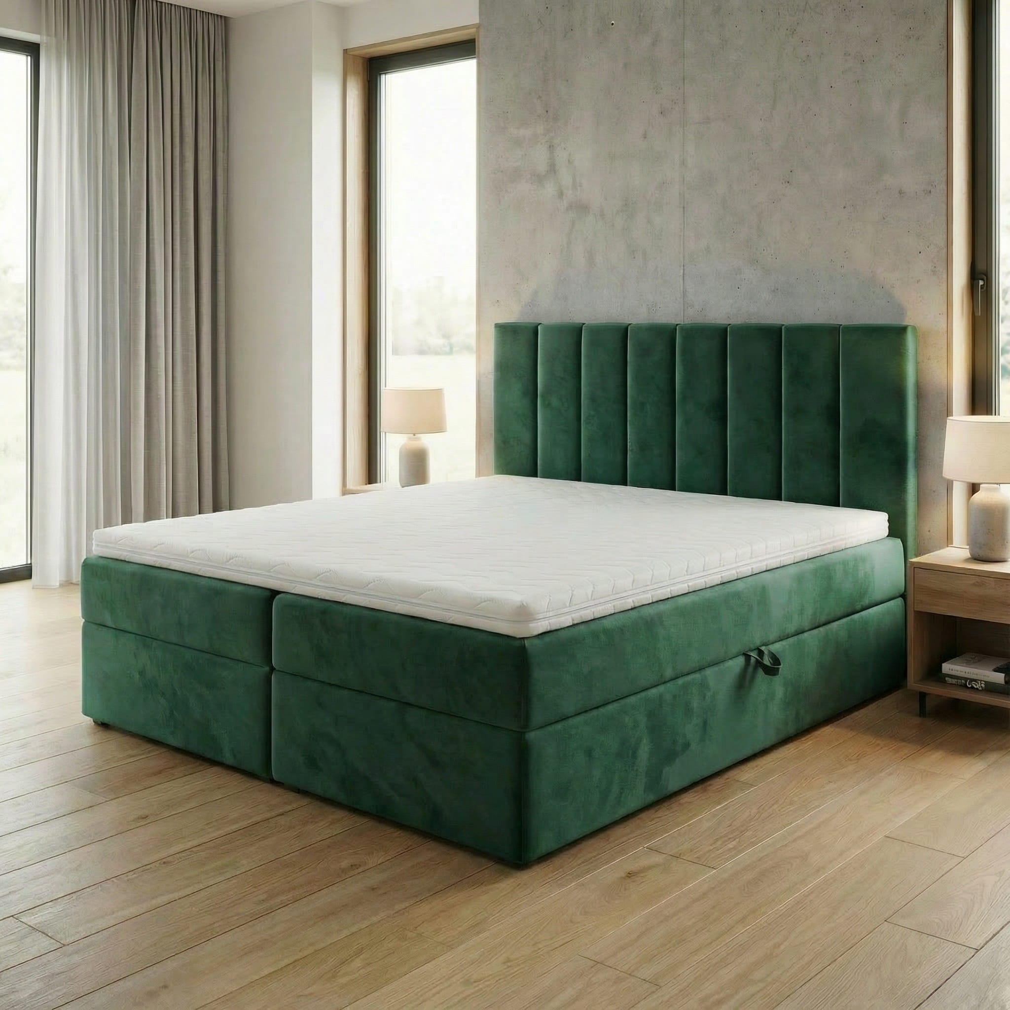 Kontinentální postel 160x200 SONNO BELLO lahvově zelená 2 úložné prostory