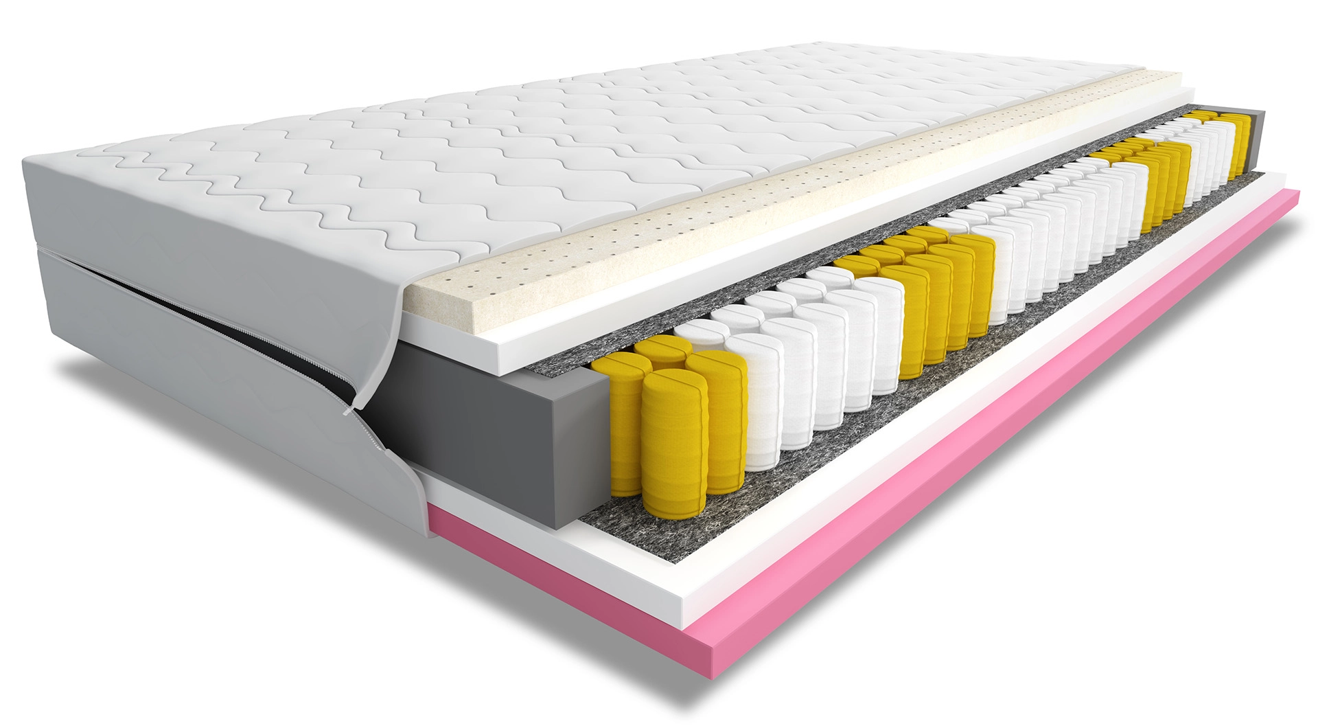 - Pohodlí a opora: Dokonale se přizpůsobí tvaru vašeho těla díky kombinaci latexu, polyuretanové pěny a taštičkových pružin.