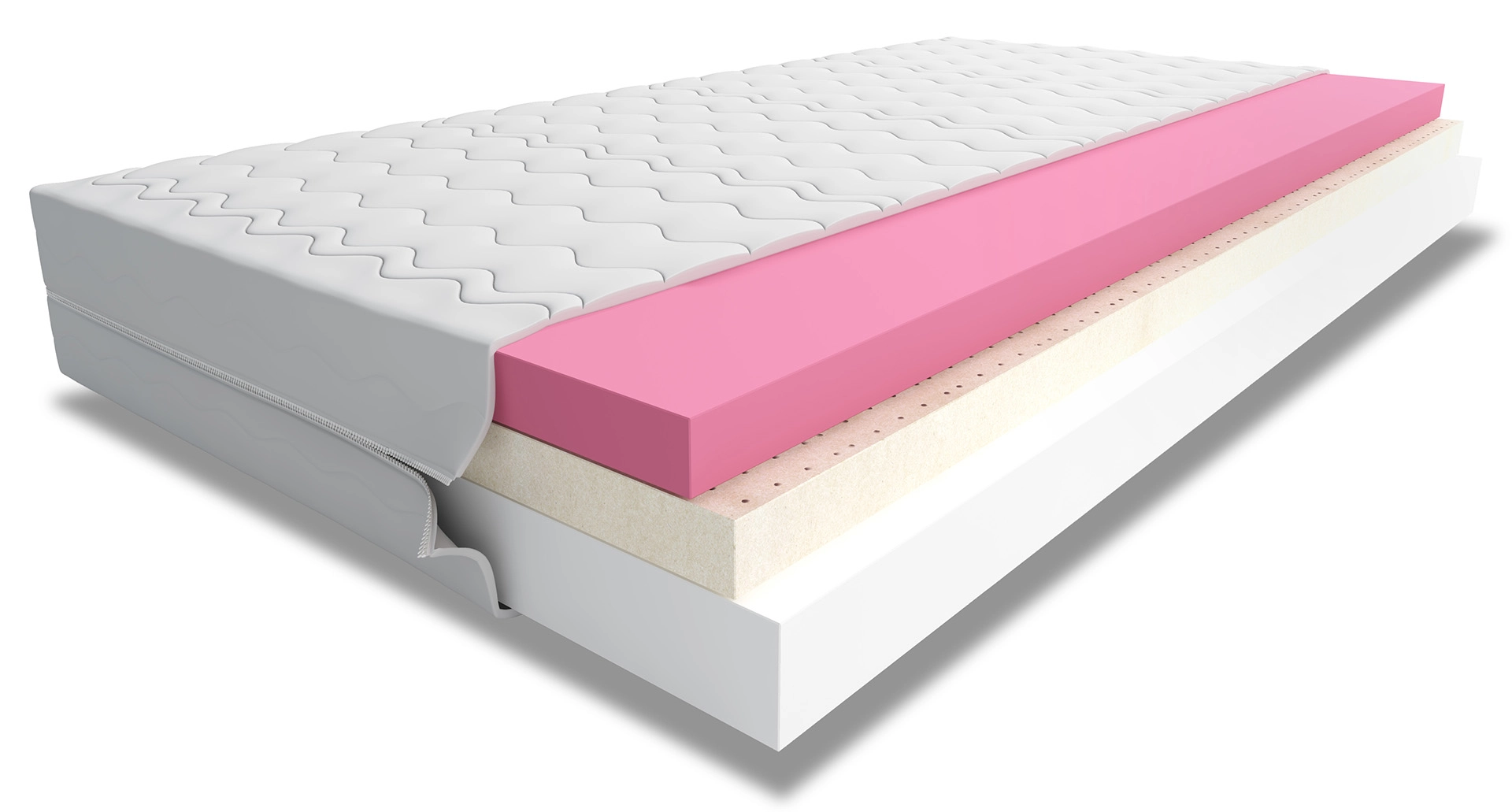 - Pohodlí a opora: Dokonalé přizpůsobení tvaru těla díky kombinaci paměťové pěny, latexu a polyuretanové pěny.