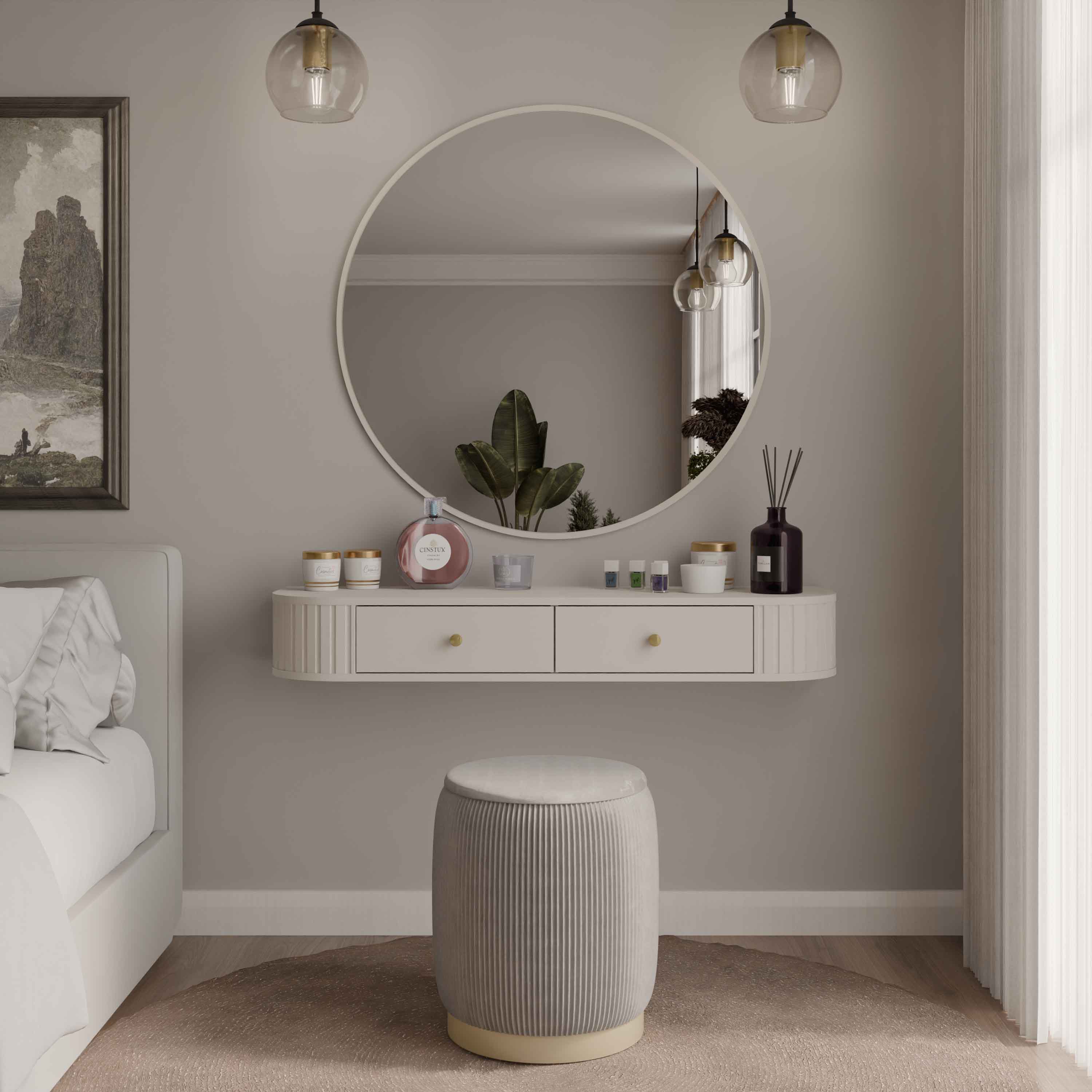 Kulaté závěsné zrcadlo k toaletnímu stolku Flana 701 Béžové