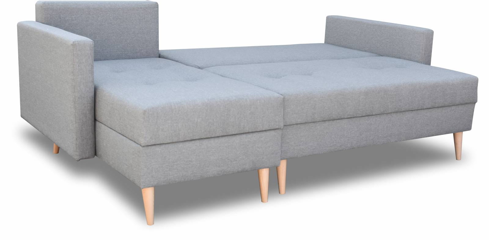 Rohová sedací souprava Falun je model udržovaný ve skandinávském stylu. Díky vysokým nohám ze dřeva v přírodní barvě a látce v odstínech šedé tento výrobek dokonale zapadne do současných trendů interiérového designu. U tohoto modelu byla celá plocha matrace vyplněna pružinami bonell a funkce spaní byla obohacena o DL mechanismus pro snadné rozložení