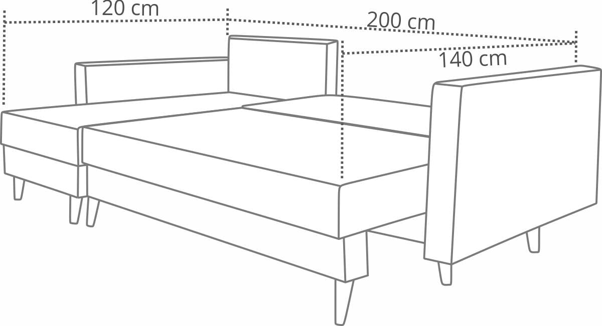V nábytku jsme použili matraci z prvotřídní pěny T25 a bonellové pružiny na celé ploše sedáku a opěráku. Výsledkem je pohodlná středně tvrdá matrace vyznačující se progresivní tuhostí. Jedná se o nejosvědčenější a nejpohodlnější řešení. V rozloženém stavu má spací plocha rozměry 140x200 cm, což umožňuje pohodlné spaní dvěma osobám.