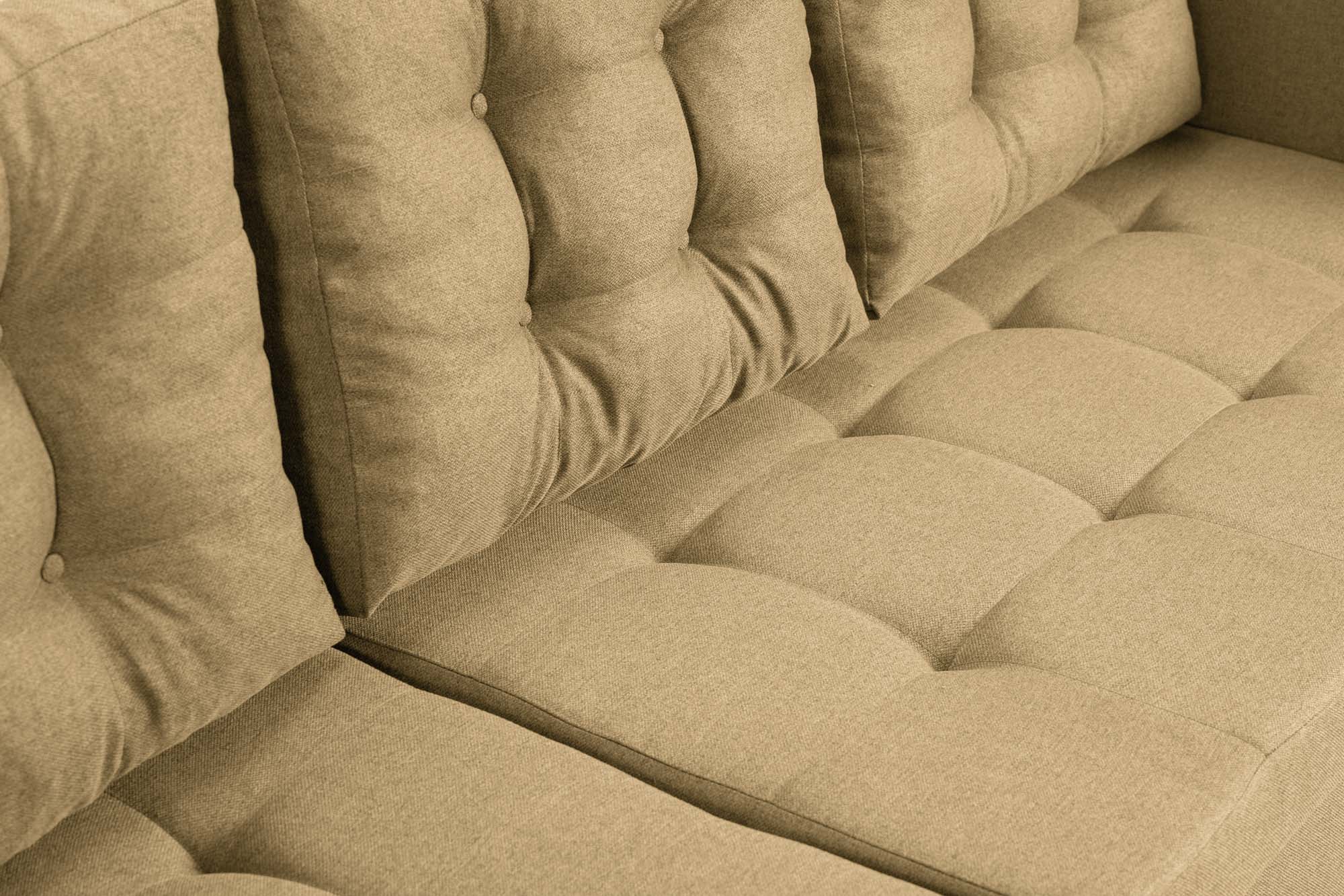 Prvním prvkem rohové sedací soupravy Oslo, který zaujme na první pohled, jsou četné detaily prošívání. Rohová pohovka je má na sedáku, lehátku a polštářích. Knoflíky spolu s prošíváním hrají dekorativní roli, ale nejen to. Prošívání měkkých ploch zabraňuje mačkání látky. Četné prošívací značky zajišťují, že i přes plynutí času bude rohová sedací souprava Oslo vypadat stále skvěle.