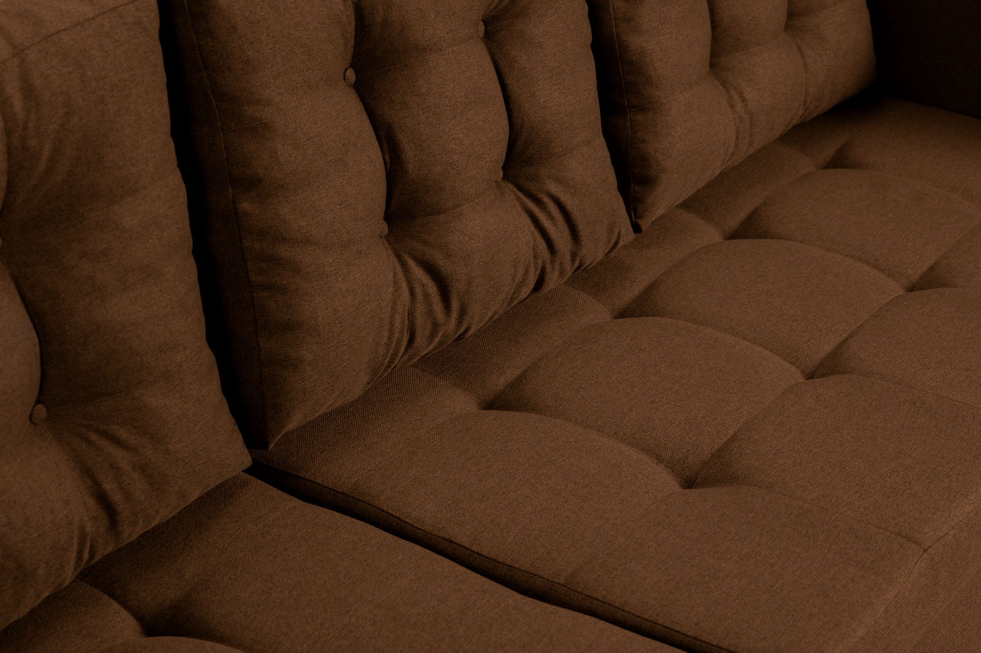 Prvním prvkem rohové sedací soupravy Oslo, který zaujme na první pohled, jsou četné detaily prošívání. Rohová pohovka je má na sedáku, lehátku a polštářích. Knoflíky spolu s prošíváním hrají dekorativní roli, ale nejen to. Prošívání měkkých ploch zabraňuje mačkání látky. Četné prošívací značky zajišťují, že i přes plynutí času bude rohová sedací souprava Oslo vypadat stále skvěle.