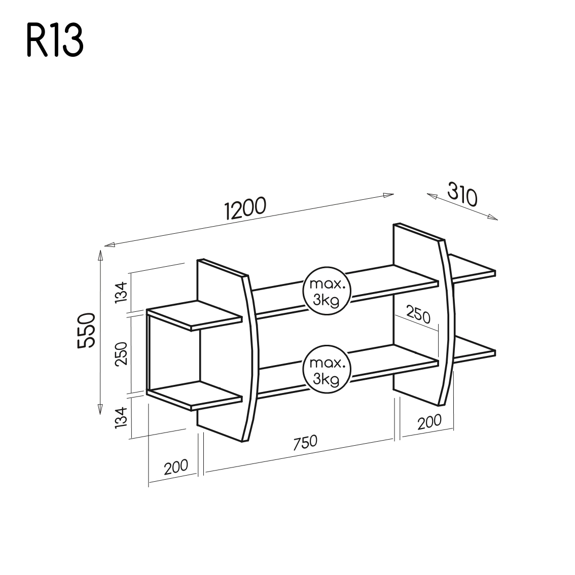 Závěsná police Romero R13 - rozměry a specifikace: