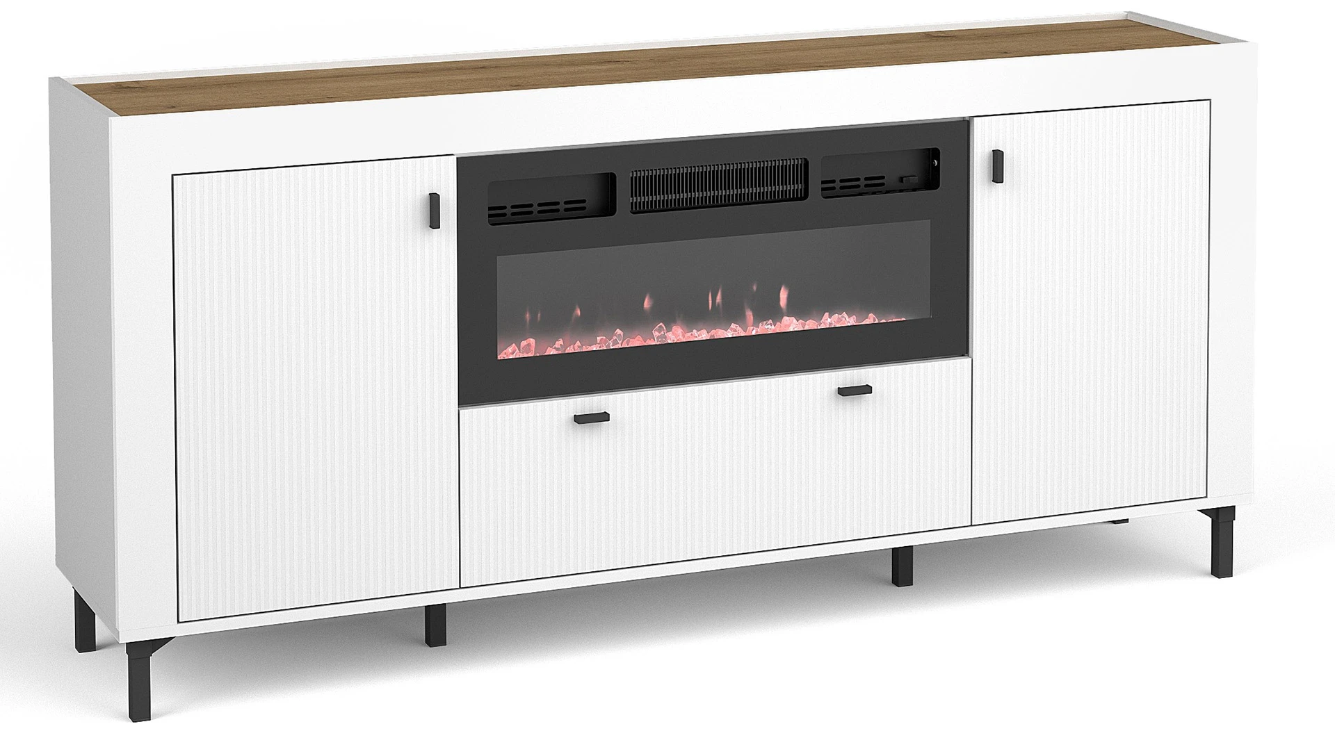 Komoda do obývacího pokoje Mossa MO7 s krbem Bílý/dub whisky