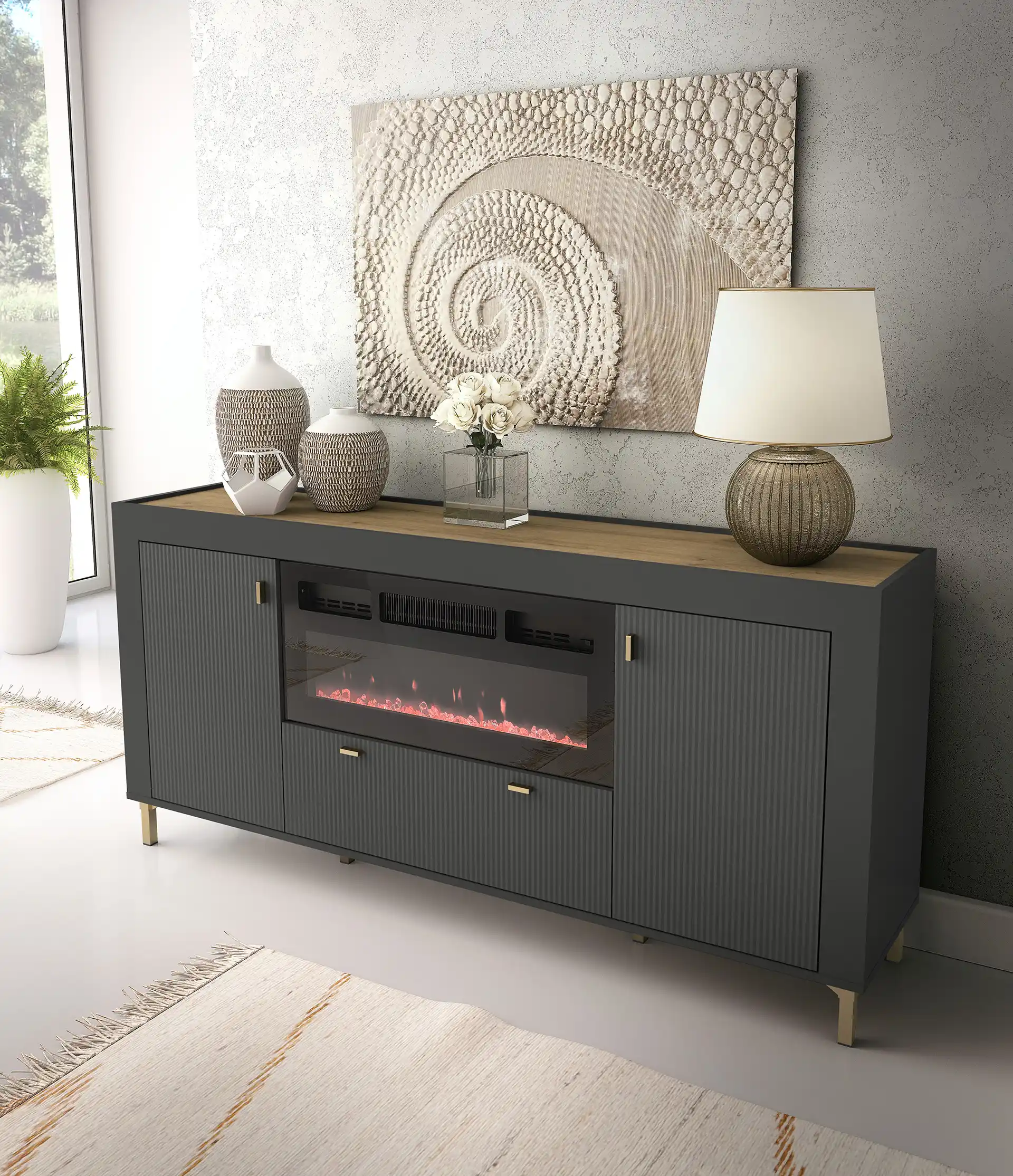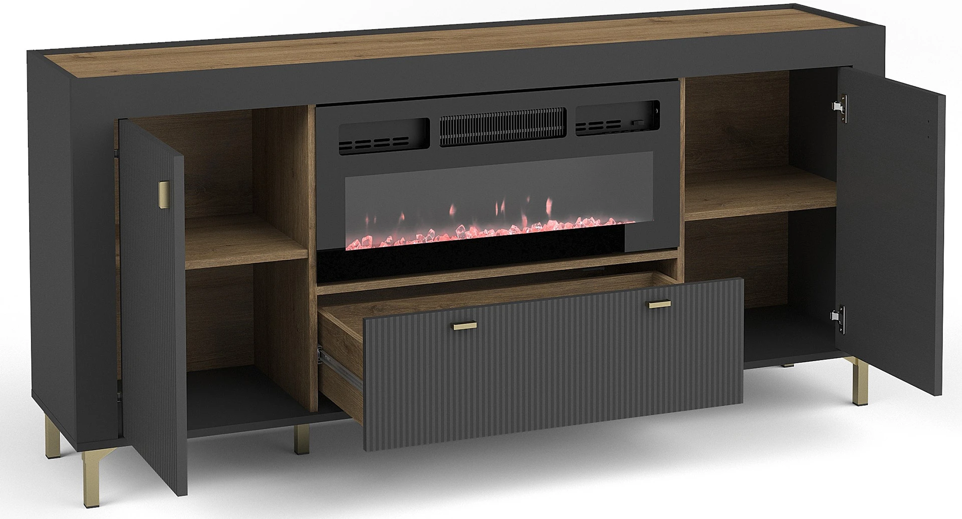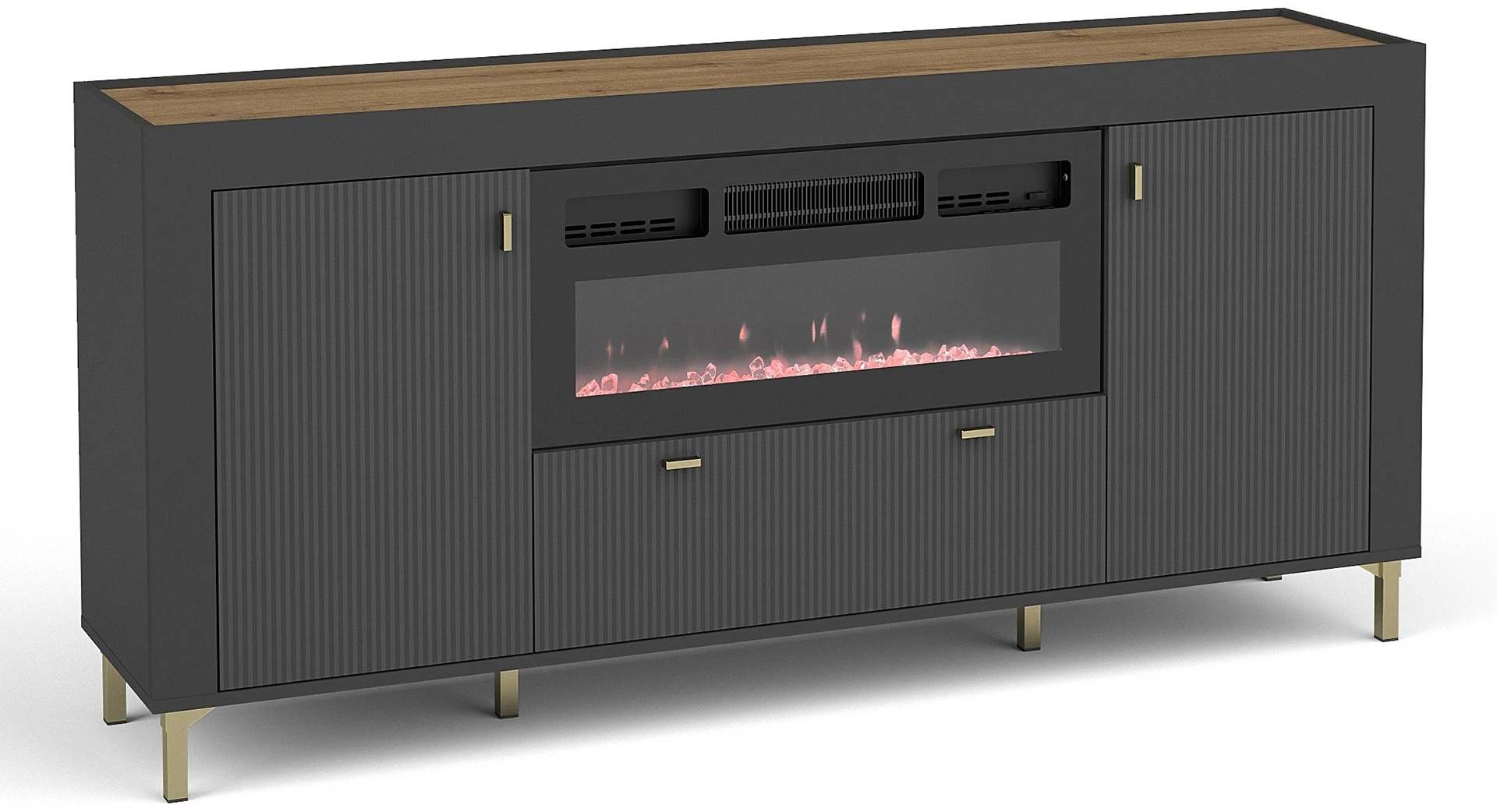 Komoda do obývacího pokoje Mossa MO7 s krbem Černá/dub whisky