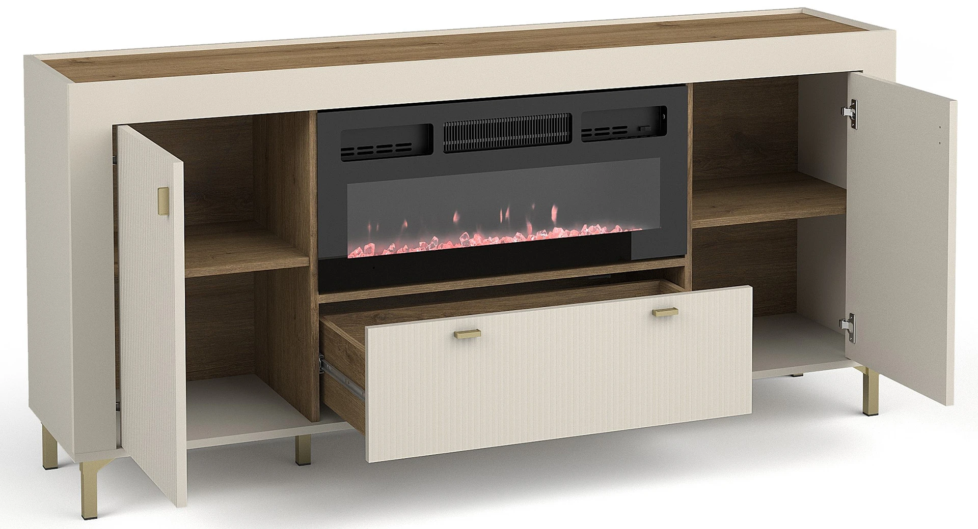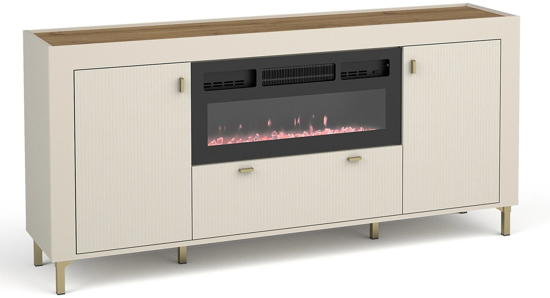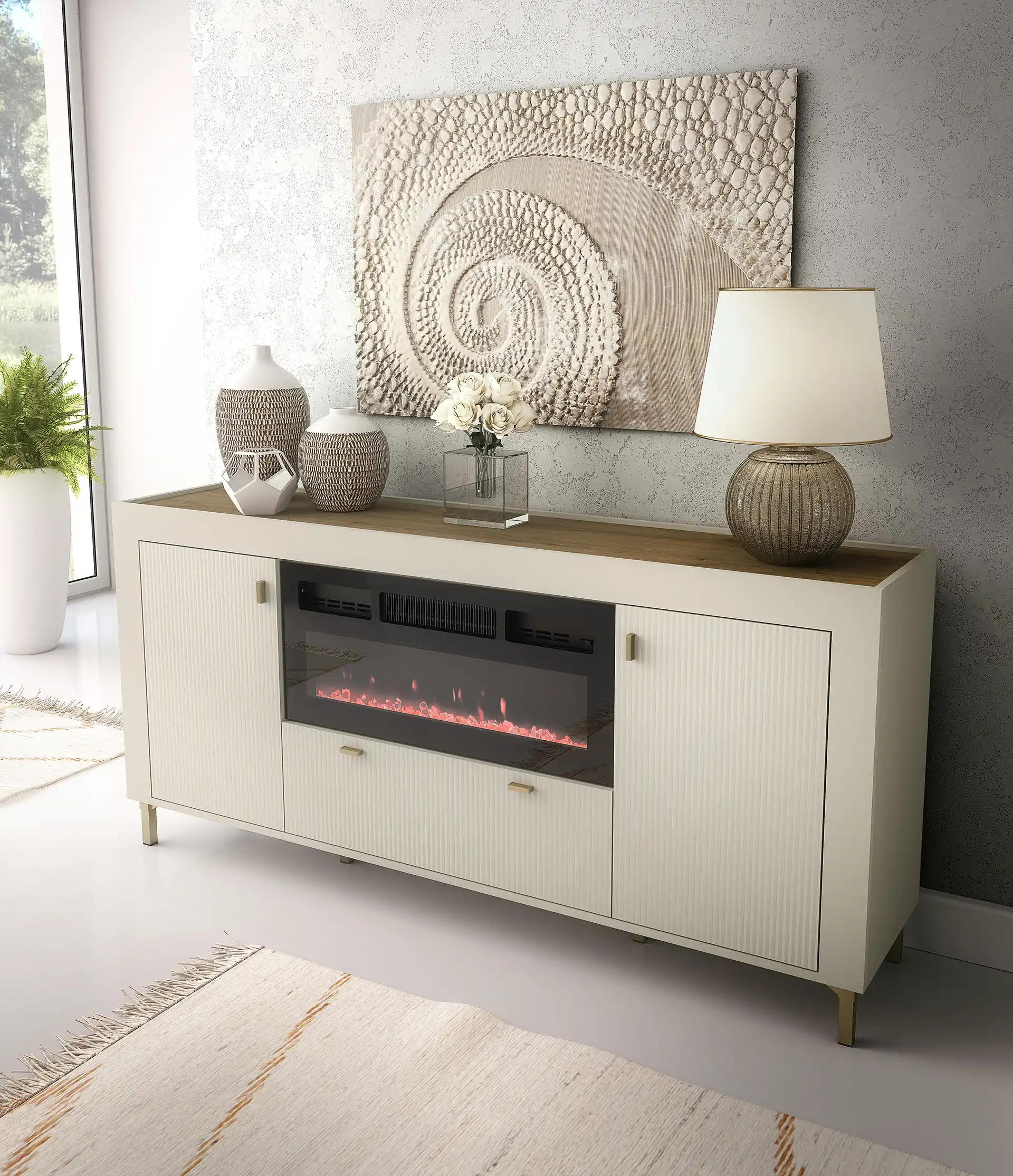 Komoda do obývacího pokoje Mossa MO7 s krbem kašmír/dub whisky