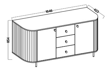 Kolekce spojuje moderní formu s jemnou elegancí. Charakteristické svislé drážkování na bocích dodává nábytku lehkost a dekorativní výraz. Série je dostupná ve dvou barevných provedeních: béžový písek se zlatými akcenty a dub Cremona s černými detaily. Celek doplňují štíhlé kovové nožky, které nábytku dodávají lehkost, podtrhují jeho moderní charakter a usnadňují udržování čistoty pod komodou. Díky tomu se kolekce Flana skvěle hodí jak do světlých, minimalistických interiérů, tak i do výraznějších aranžmá.