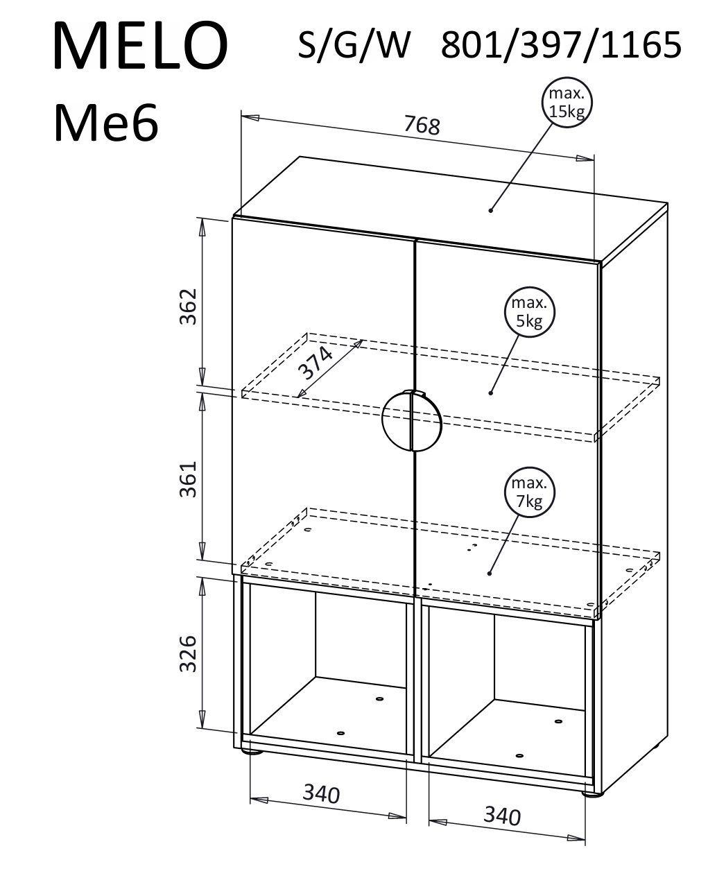 Moderní komoda Melo ME6 je dokonalým řešením pro vaši ložnici nebo obývací pokoj. Potěší vás jedinečná kombinace barev , která dodá vašemu prostoru eleganci. Komoda byla vyrobena s důrazem na detail a nabízí dostatek úložného prostoru v podobě dvou dvířek a čtyř polic. Naše komoda s matným povrchem vás potěší svou funkčností a odolností. Už neváhejte a vneste do svého interiéru moderní design s komodou Melo!