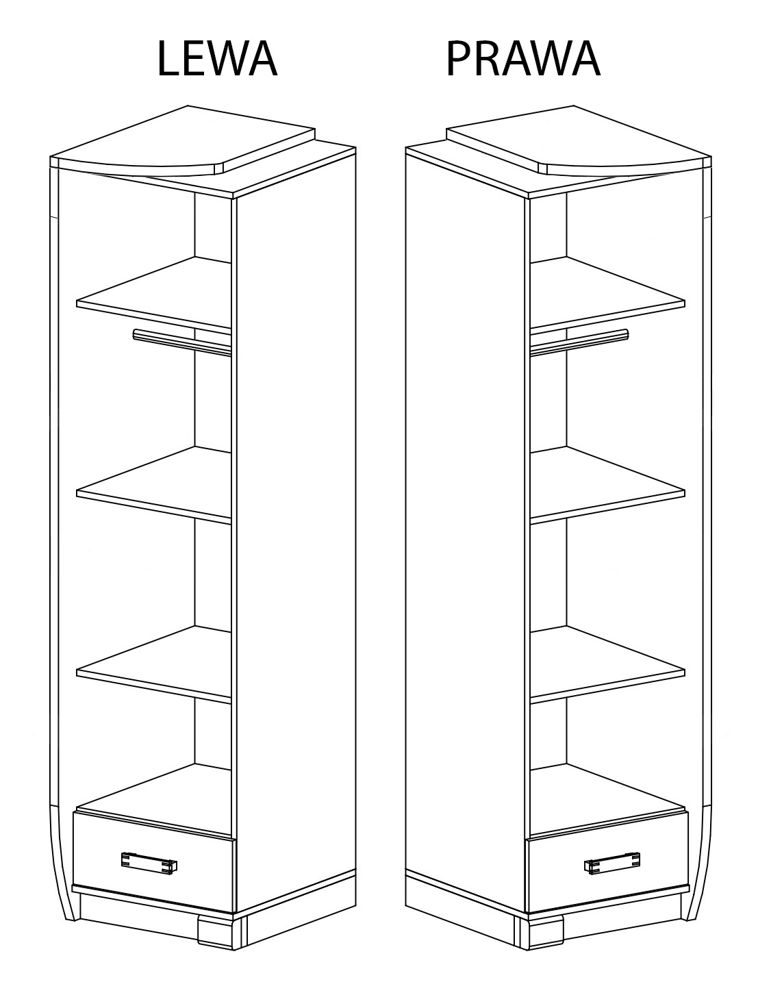 Hledáte elegantní a funkční řešení pro svůj obývací pokoj? Objevte naši úzkou jednodveřovou šatní skříň se zásuvkou, která splní vaše očekávání z hlediska stylu i praktičnosti. Naše úzká šatní skříň je pro vás ideálním řešením, pokud potřebujete ve svém obývacím pokoji maximálně ušetřit místo. Díky svým kompaktním rozměrům se vejde prakticky do každé místnosti. I přes svou úzkou šířku nabízí šatní skříň dostatek úložného prostoru díky jednodveřovému provedení a počtu polic a zásuvek.