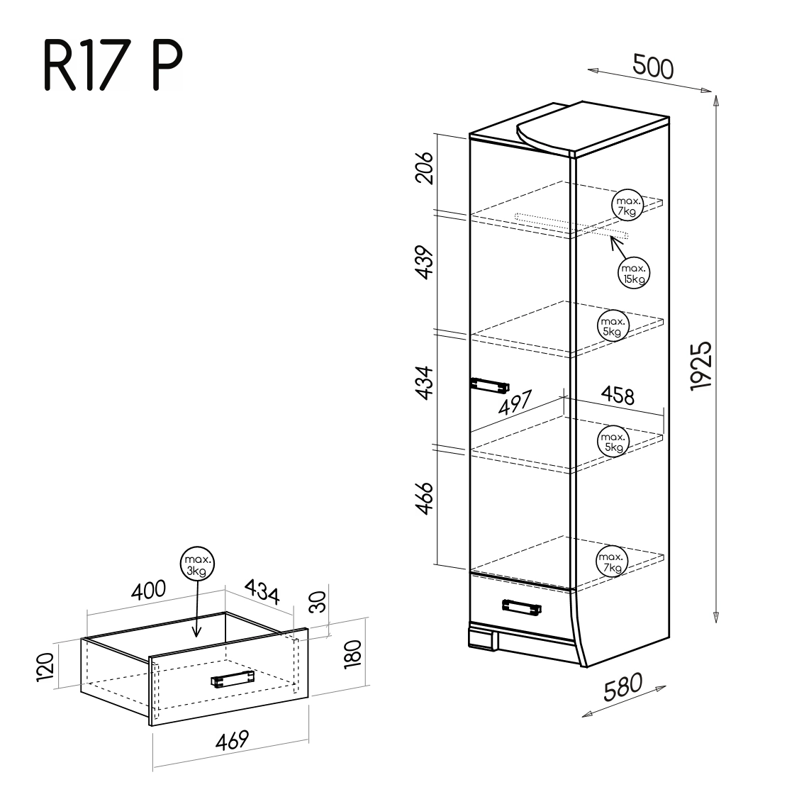 Romero R17P 1D1S wardrobe - rozměry/specifikaces