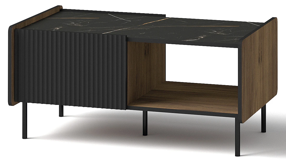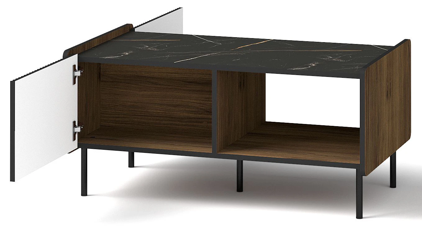 Konferenční stolek do obývacího pokoje Prestigo P11 v barvě černá/ořech/san Sebastian je elegantní a funkční řešení, které vnese do vašeho obývacího pokoje sofistikovanost. S konferenčním stolkem Prestigo P11 budete mít v pokoji pořádek díky praktickým odkládacím přihrádkám a jeho univerzální design se hodí k různým stylům interiéru.