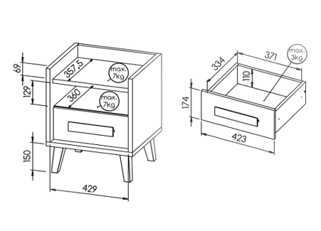 Verso W11 bedside cabinet - Dimensions/Specifications: