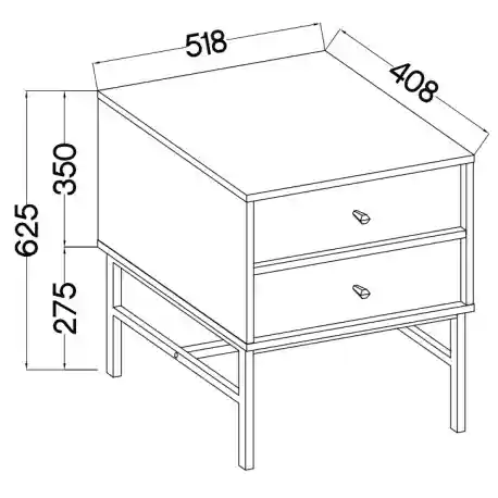 Praktický noční stolek se dvěma prostornými zásuvkami, které usnadňují úložný prostor a pomáhají udržovat pořádek v ložnici. Vybaven kovovými úchyty ve zlaté barvě a kuličkovými pojezdy pro plynulé a tiché otevírání.