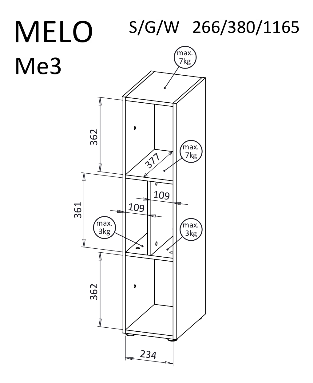 Melo ME3 - Rozměry/Specifikace: