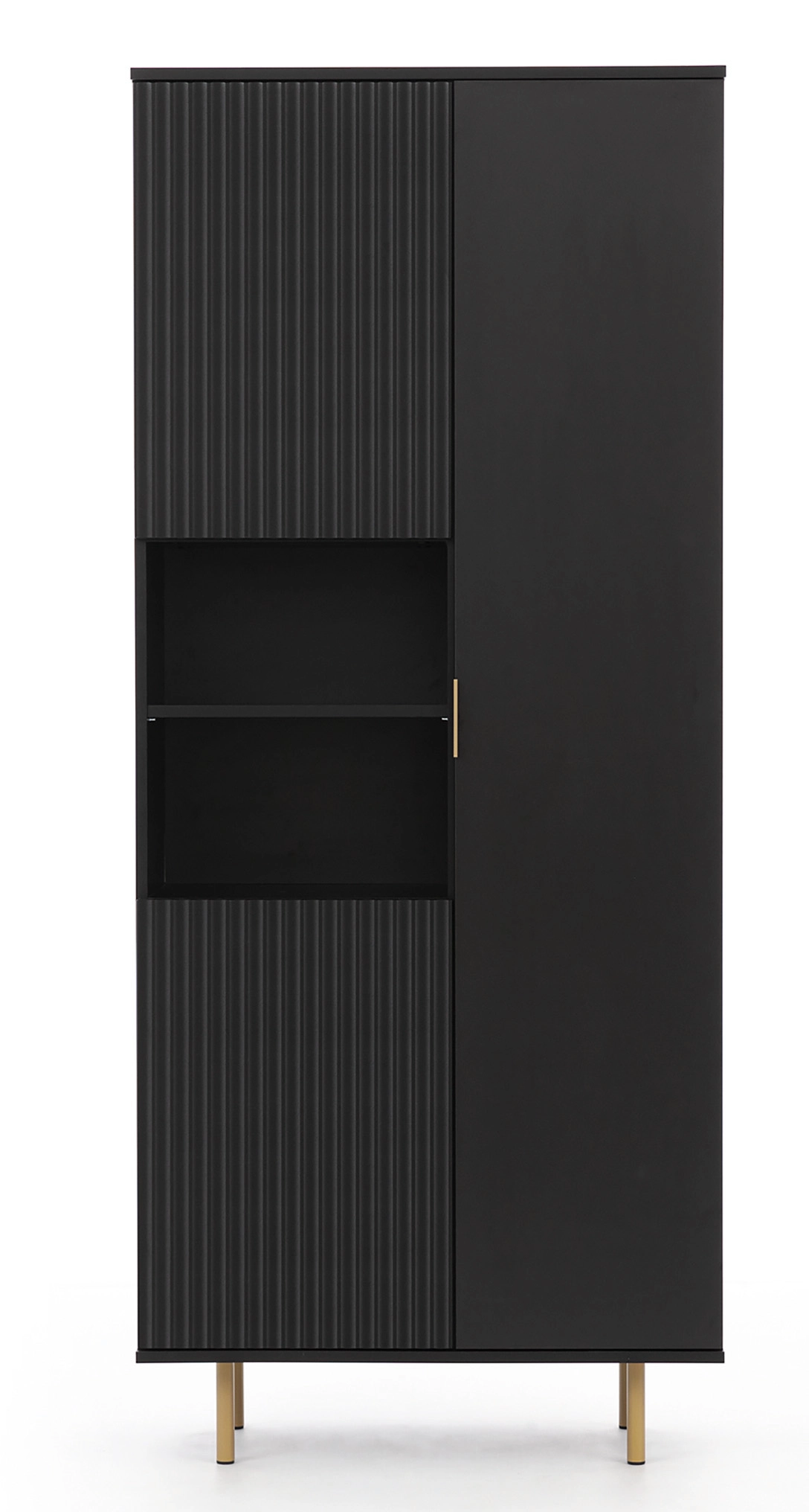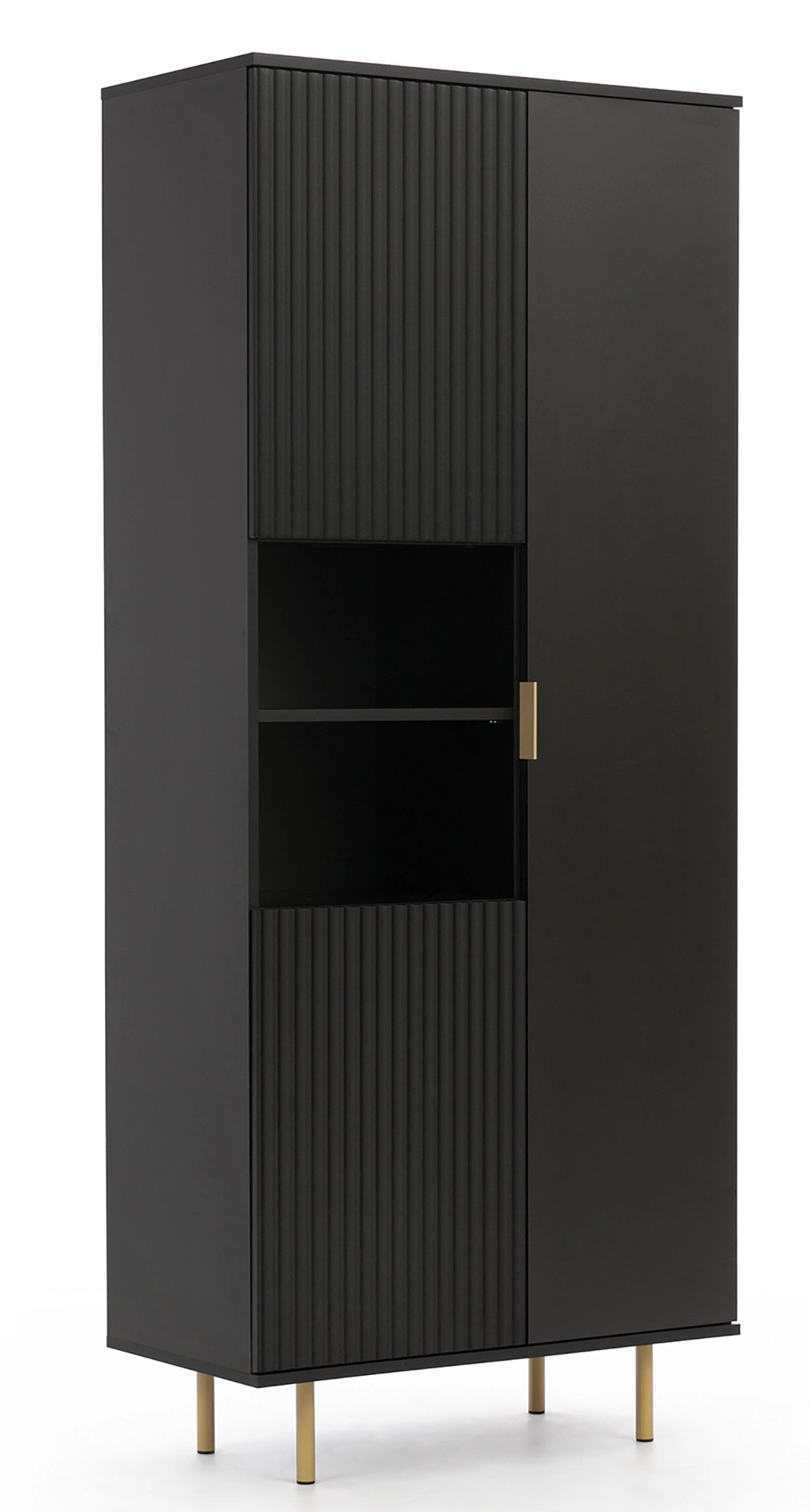 Jedinečná knihovna Nubia R3D je harmonickou kombinací funkčnosti a elegantního designu. Ideální do obývacího pokoje nebo ložnice. Detailně propracovaný interiér s policemi, zásuvkami a dvířky poskytuje dostatek úložného prostoru a usnadňuje každodenní udržování pořádku. Matná černá povrchová úprava vnese do vašeho interiéru jemný nádech stylu. Nadčasový tvar s kovovými nožkami dodává knihovně lehký a moderní nádech. Získejte nejen praktické úložné řešení, ale také designový dekorativní prvek, který podtrhne charakter vašeho prostoru. Jistě potěší vaše hosty a ve vašem interiéru se bude cítit příjemně.