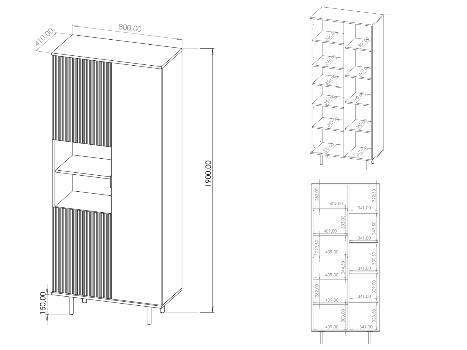 Nubia R3D bookcase - Dimensions/Specifications:
