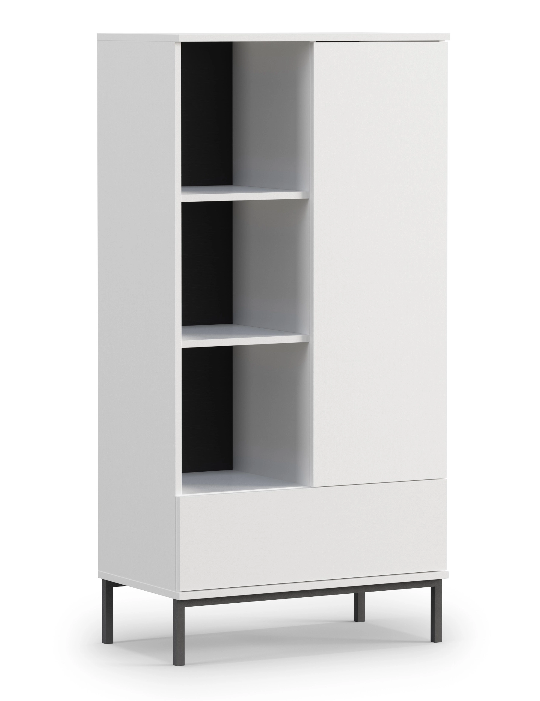 Moderní knihovna R70 Querty White se zásuvkou je dokonalým doplňkem vašeho obývacího pokoje. Tato knihovna je navržena s ohledem na funkčnost a styl a nabízí spoustu úložného prostoru. Její elegantní tvary a matná povrchová úprava z ní udělají nejen praktický kus nábytku, ale také designový prvek vašeho interiéru. Díky konstrukci z laminovaných desek a nízkým kovovým nožkám je knihovna nejen stylová, ale také odolná. Nechte svůj obývací pokoj získat nový charakter s tímto funkčním kusem nábytku.