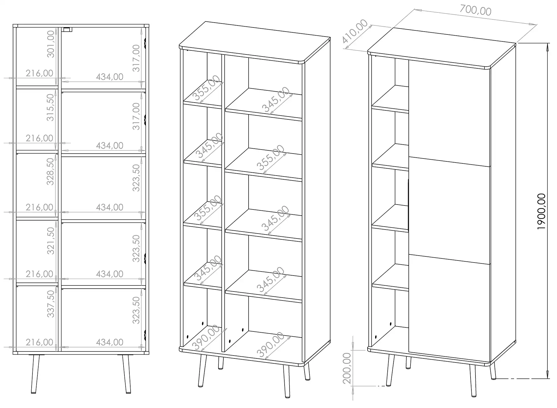 Pinelli bookcase PN-03 - Dimensions/Specifications: