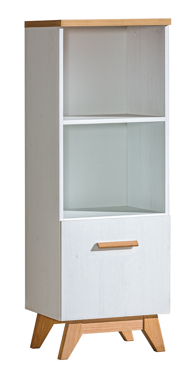 Knihovna s elegantním designem, ideální do moderního obývacího pokoje. Tento jedinečný kus nábytku z laminované desky dodá vašemu obývacímu pokoji jedinečný charakter. S jedněmi dvířky, dvěma policemi, to vše v barevném provedení dub nash/borovice andersen. Tato knihovna poskytuje funkčnost a styl v jednom. Získejte další úložný prostor díky knihovně Sven SV7.