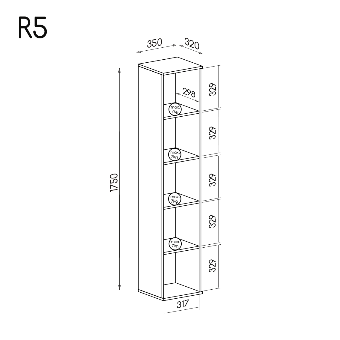 - Počet polic: 5