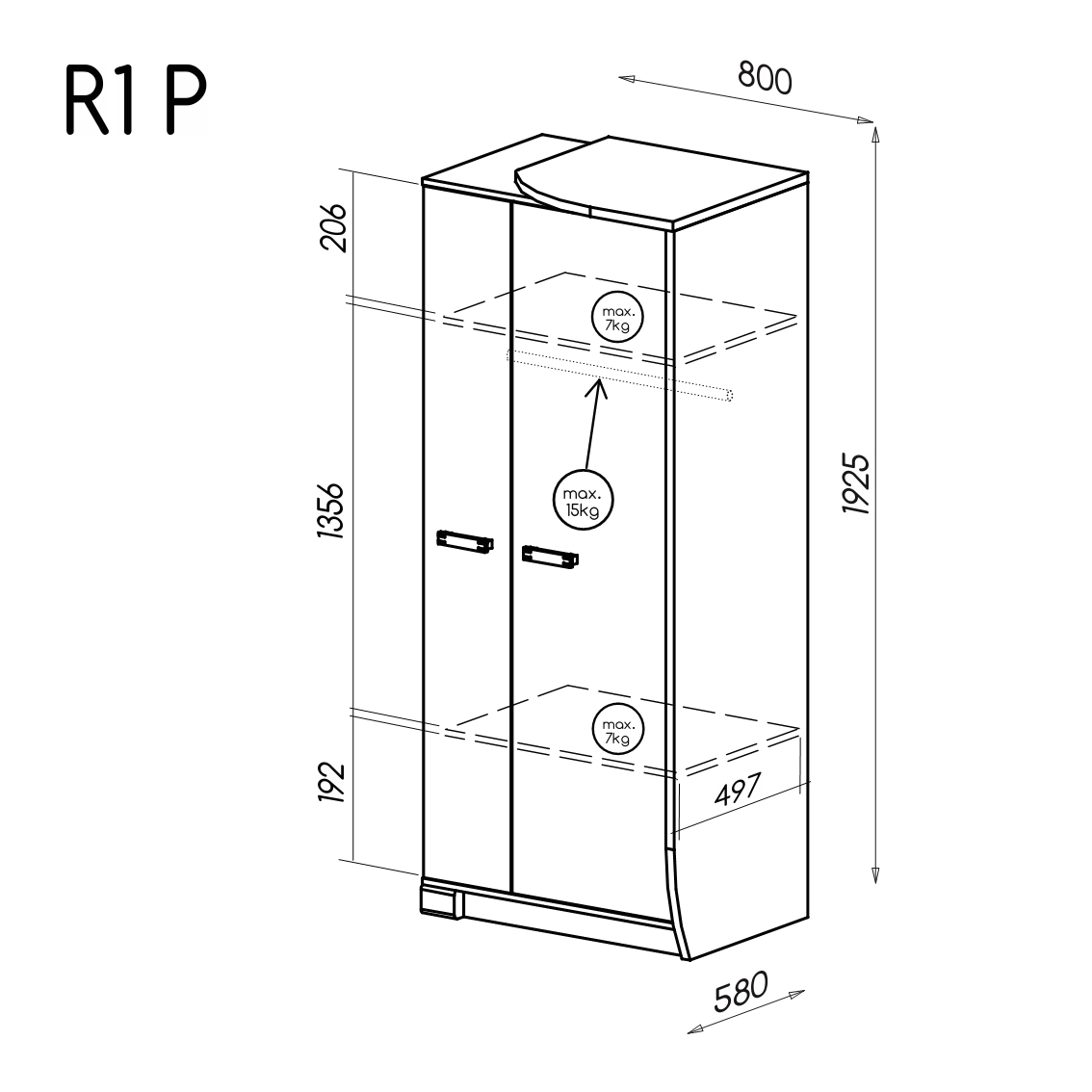 Šatní skříň Romero R1P 2D - rozměry/specifikace