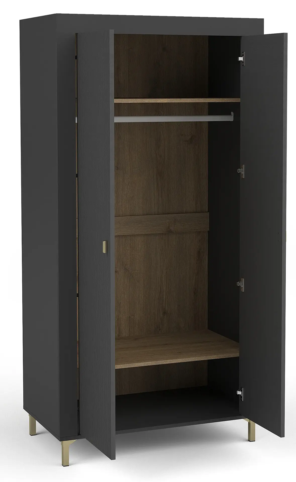 Novinka v naší sbírce! Dvoudveřová šatní skříň Mossa MO1 v černé barvě a dubu whisky je dokonalým řešením pro vaši ložnici. Díky klasickému a zároveň modernímu designu bude stylovým doplňkem každého prostoru. Je navržena s ohledem na funkčnost a poskytuje dostatek úložného prostoru pro oblečení a doplňky. Elegantní a pevně konstruovaná skříň jistě splní vaše očekávání. Vyberte si kvalitu a styl se šatní skříní Mossa MO1!