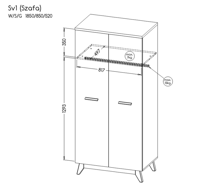 Šatní skříň Sven SV1 - Rozměry/Specifikace: - Šatní skříň Sven SV1 je vyrobena z kvalitního dřeva, které je součástí dodávky: